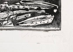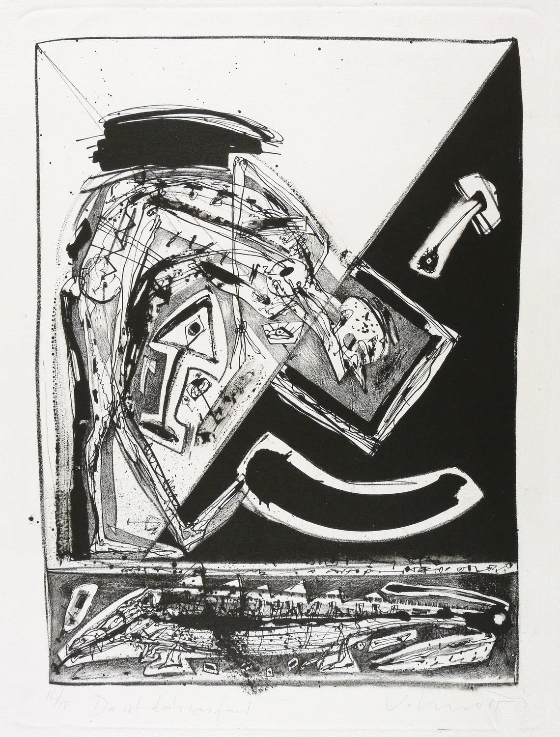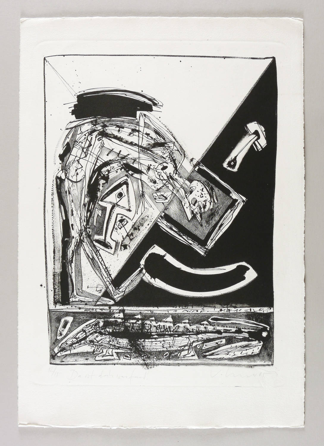 1985. Lithografie / Kreide- & Pinsellithografie, in Schwarz, auf hellchamois Büttenpapier. – Originale Künstlergrafik, von Steffen Volmer. – Auflage Exemplar Nr. 12/15. – 43,5 x 32,0 cm (Darstellung / Druckbild), 57 x 40 cm (Blatt).