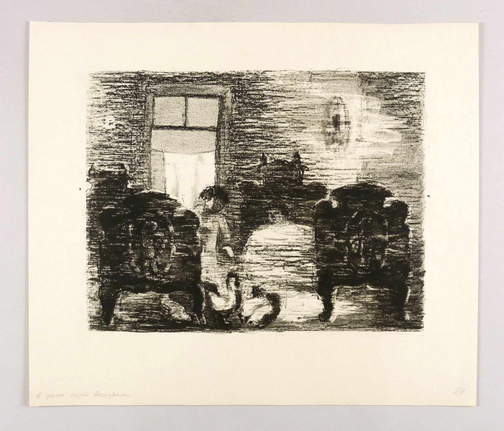 Mayer-Strodt V 133. – Nicht handsigniert. Links unten in Bleistift vom Künstler kyrillisch bezeichnet: ″В доме перед вечездом″. In der rechten unteren Blattecke nummeriert: ″84″. – Abzug außerhalb der Auflage von 125 Exemplaren zum lithografischen Mappenwerk ″Tewje, der Milchmann″ zu Scholem Alejchem (Moskau: Sovetskij Chudoznik 1961/1966). Druck wohl in Leningrad. - Die etwas spätere Edition als illustriertes Buch (Dresden: Verlag der Kunst 1967) wurde als ″Schönstes Buch der DDR 1967″ ausgezeichnet. - Sehr selten. – Schönes Exemplar. Sehr guter Zustand.