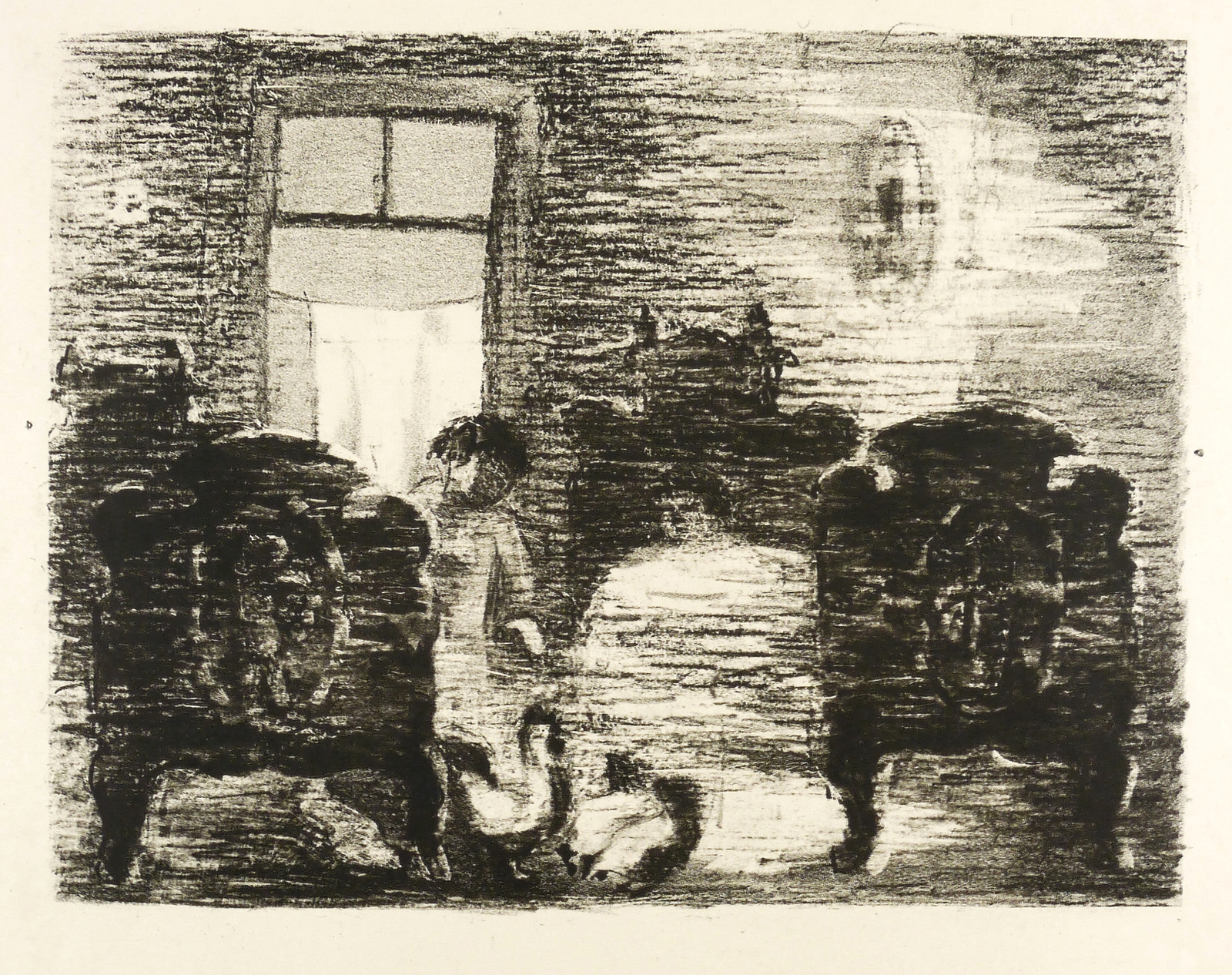 1957-1960. Lithografie / Kreidelithografie, partiell geschabt, in Schwarz, auf glattem Werkdruckpapier. – Originale Künstlergrafik, von Anatoli Kaplan. – 29,5 x 38,1 cm (Darstellung / Druckbild), 44 x 51 cm (Blatt).