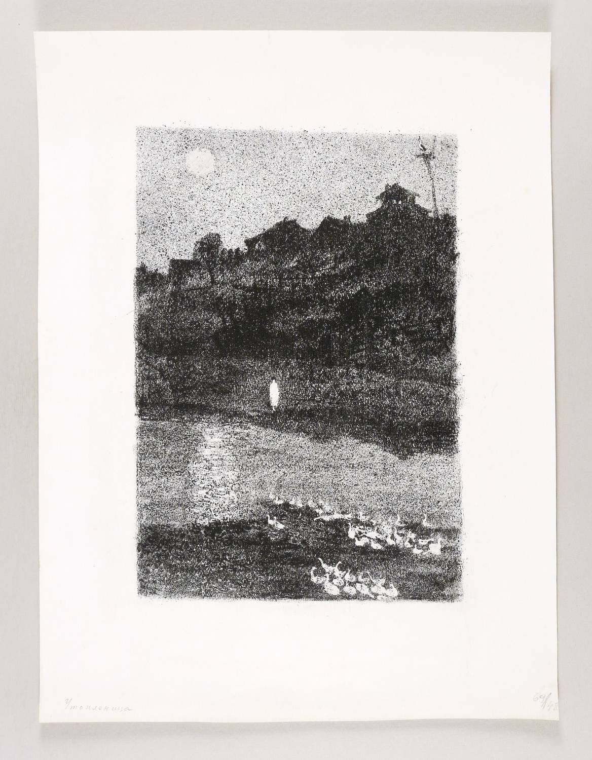 1957-1960. Lithografie / Kreidelithografie, partiell geschabt, in Schwarz, auf glattem hellchamois Karton. – Originale Künstlergrafik, von Anatoli Kaplan. – 39,2 x 27,0 cm (Darstellung / Druckbild), 57 x 43 cm (Blatt).