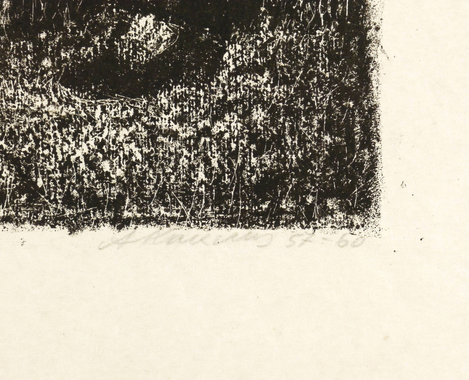 1957-1960. Lithografie / Pinsellithografie, partiell geschabt, in Schwarz, auf glattem gelbem Werkdruckpapier. – Originale Künstlergrafik, von Anatoli Kaplan. – 42,0 x 30,0 cm (Darstellung / Druckbild), 57 x 43 cm (Blatt).