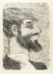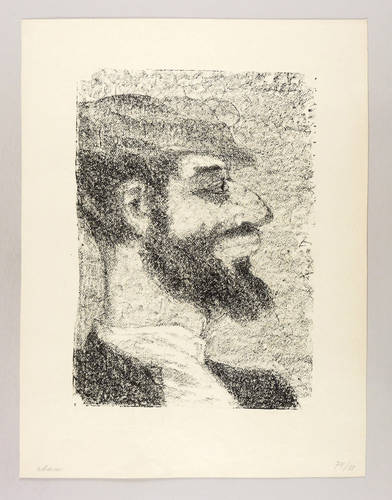 Anatoli Kaplan (1902 Rahatschou, Weißrussland - 1980 Leningrad). Russisch-jüdischer Maler, Bildhauer und Grafiker. Arbeitete zunächst in seiner Heimatstadt als Zeichenlehrer. 1922-27 Studium an der Kunstakademie in Petrograd (später Leningrad). Nach dem Studium freiberuflich tätig. Ab 1934 Studium der Lithografie in der Experimentierwerkstatt des Leningrader Künstlerverbandes bei Georgi Werejski, ehemals Kustos am Kupferstichkabinett der Eremitage. 1937-40 erste lithografische Folge "Kasrilowka" mit jüdisch-folkloristischen Impressionen aus Rogatschow / heute das belarussische Рагачоў. 1939 Aufnahme in den Verband sowjetischer Künstler. 1941 Evakuierung in den Ural nach Tschussew. Dort arbeitete er vorübergehend wieder als Zeichenlehrer. 1944 Rückkehr nach Leningrad. 1944-46 Arbeit an der Lithografie-Folge "Leningrad". 1953/54 inspiriert durch Scholem Alejchem Wiederaufnahme der "Kasrilowka"-Bilder zum heimatlichen Rogatschow als Lebensthema. So entstehen die großen Lithografie-Zyklen zur jüdischen Literatur: "Der behexte Schneider" (Teil 1 1957/58, Teil 2 1963), "Tewje der Milchmann" (Moskau: Chudoznik-Verlag Teile 1-2 1961, Teil 3 1966, Dresden: Verlag der Kunst 1967), "Das Zicklein" (1961), "Stempenju" (1967), "Baal Schem als Ehestifter" von J.L. Perez (1969), "Levins Mühle" von Johannes Bobrowski (1975). Später arbeitete er auch als Bildhauer und Kunsttöpfer.