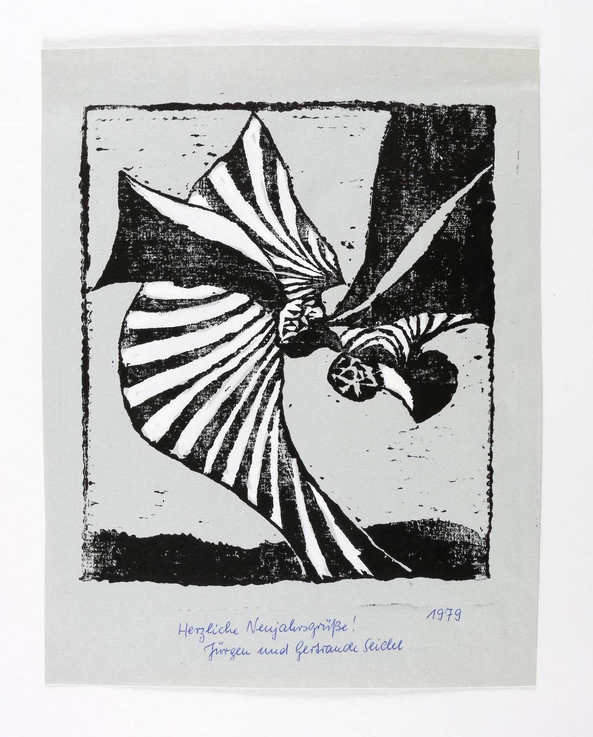 Unterhalb in Kugelschreiber bezeichnet, datiert und signiert: ″Herzliche Neujahrsgrüße! 1979. Jürgen und Gertraude Seidel″. – Sehr guter Zustand.