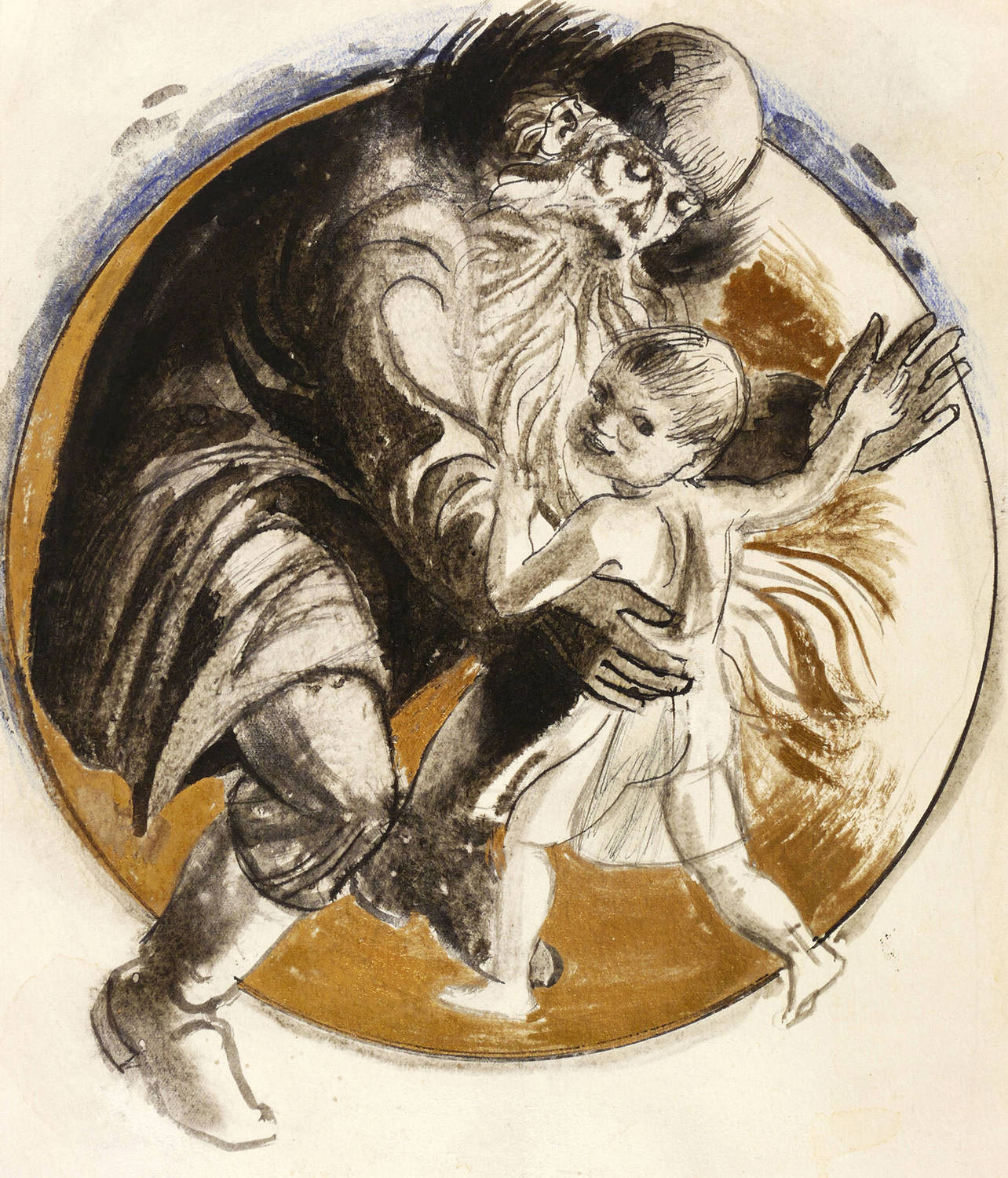 1979. Mischtechnik / Tusche & Goldbronze, auf kräftigem hellchamois Aquarellkarton. – Originale Künstlergrafik, von Erich Gerlach. – Unikat. – 25,9 x 21,4 cm (Darstellung / Blatt).
