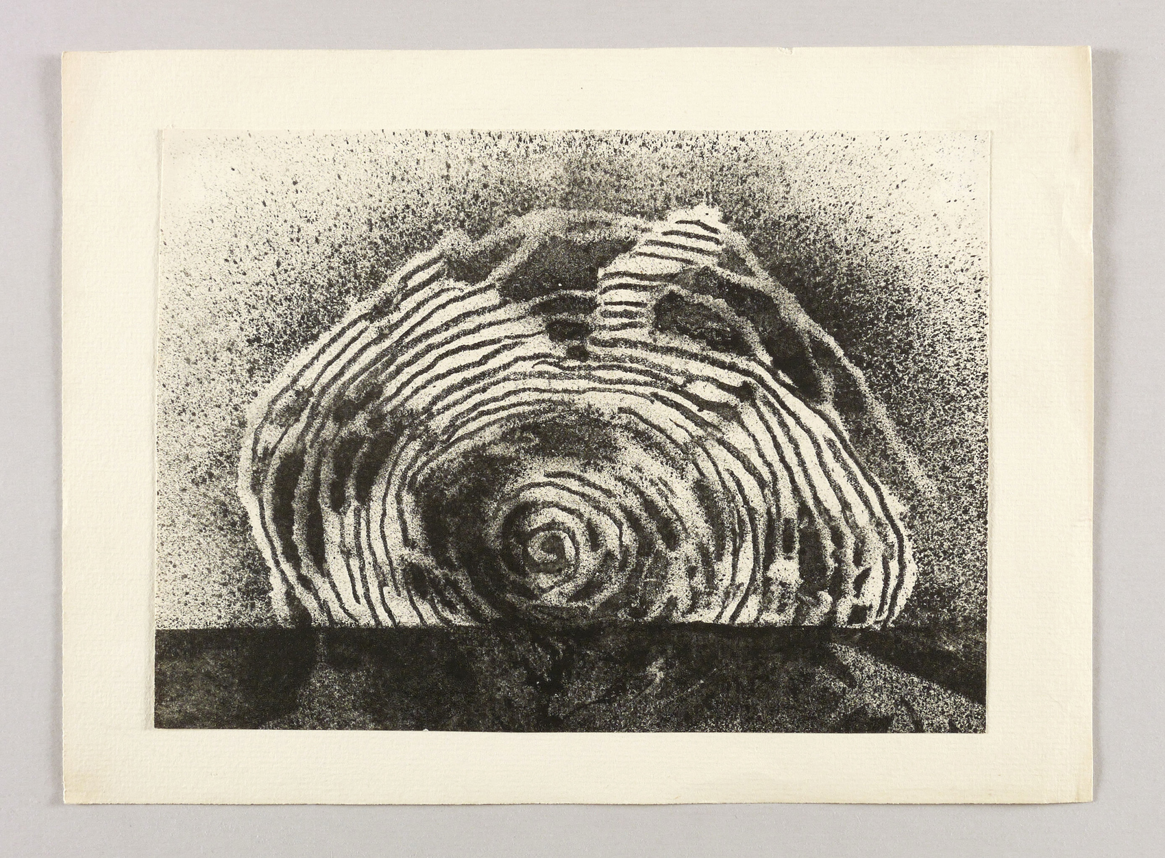 1977. Lithografie / Kreidelithografie, partiell gespritzt, in Schwarz, auf hellem Werkdruckpapier. – Originale Künstlergrafik, von Jürgen Seidel. – 23 x 30 cm (Trägerkarton), 17,8 x 24,3 cm (Darstellung / Blatt).