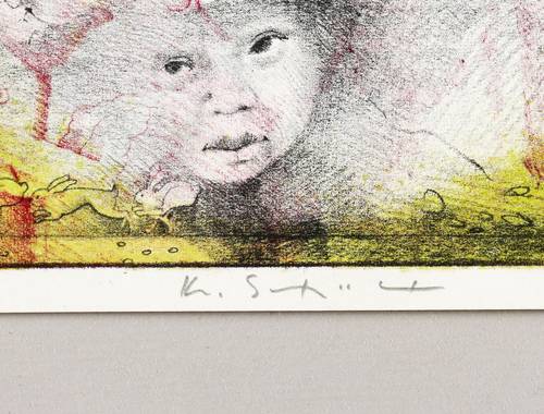 Konrad Schüler (*1938 Rangsdorf bei Berlin, lebt und arbeitet in Kükels bei Segeberg). Deutscher Maler und Grafiker. Bildkünstlerischer Unterricht bei Harry Grossmann und Ottilie Ehlers-Kollwitz in Berlin-Lichtenrade. Lehre zum Farbenlithograph in Berlin Kreuzberg. Ausbildung an der Meisterschule für Graphik-Druck Werbung Berlin. Studium an der Hochschule für bildende Künste Berlin bei Kögler und Hartmann. Ab 1964 künstlerischer Leiter der Druckwerkstatt an der Akademie für Graphik-Druck und Werbung. Ab 1966 zahlreiche Gruppen- und Einzelausstellungen. 1971-97 Professur und künstlerische Leitung der Druckwerkstatt Flach- und Hochdruck an der Hochschule der Künste Berlin (HdK/UdK). Seit 1973 Vertretung in der Produzentengalerie in Kükels. Mitglied Ausstellungsgemeinschaft Segeberger Künstler (AUGE).