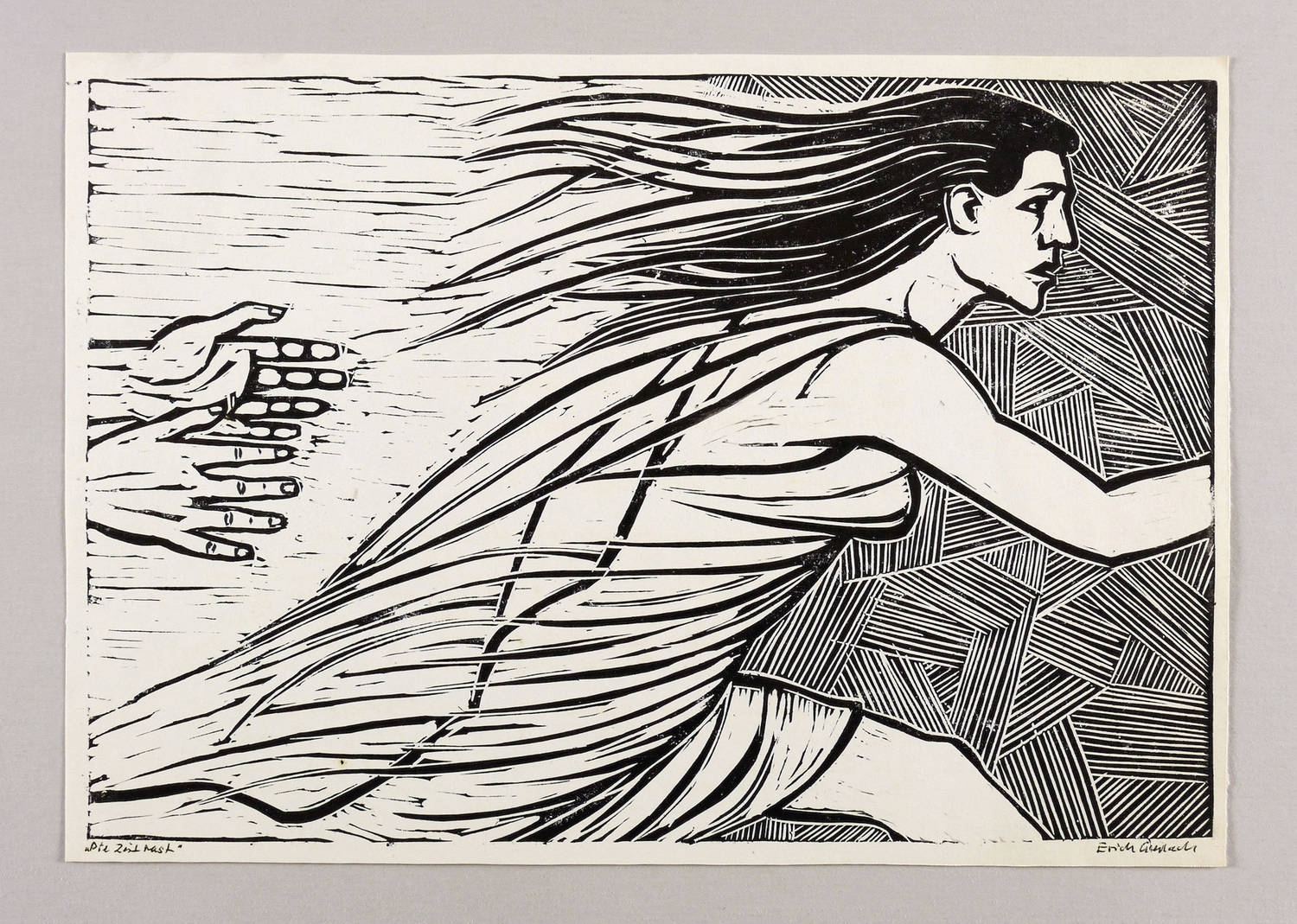 Rechts unten in Kugelschreiber signiert: ″Erich Gerlach″. Links bezeichnet: ″Die Zeit rast″. – Sehr guter Zustand.