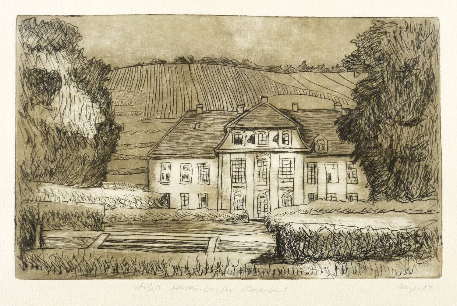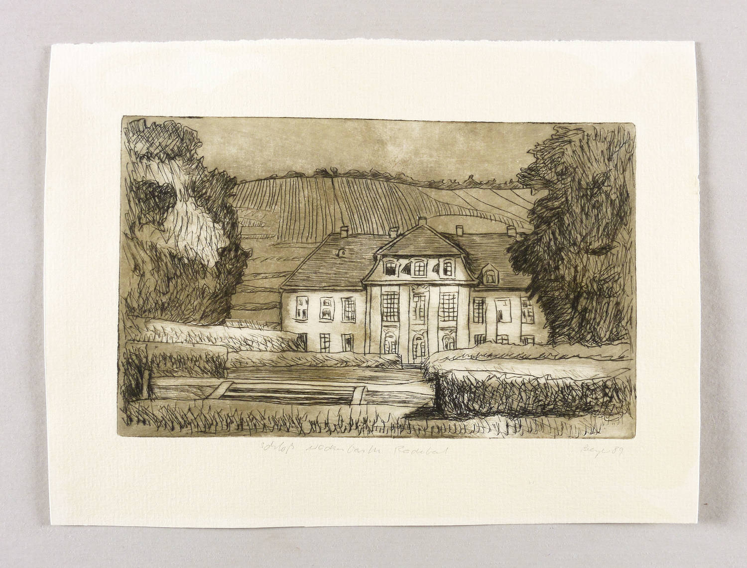 Rechts unten in Bleistift signiert und datiert: ″Beyer 86″. Links Titel: ″Schloß Wackerbarth Radebeul″. – Sehr gut erhalten.