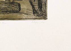 1989. Farbradierung / Strichätzung, in Schiefergrau & Schwarz, partiell gewischt, auf hellem Velin. – Originale Künstlergrafik, von Manfred Beyer. – 8,7 x 10,2 cm (Darstellung / Platte), 19 x 24 cm (Blatt).