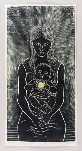 1982. Farblinolschnitt, in Schwarz, Grün und Gelb, auf Maschinenpapier. – Originale Künstlergrafik, von Erich Gerlach. – 41,6 x 21,0 cm (Darstellung), 43,2 x 22,0 cm (Blatt).