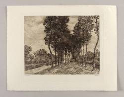 Aus: Théodore Duret, Histoire des peintres impressionnistes. Pissarro, Claude Monet, Sisley, Renoir, Berthe Morisot, Cézanne, Guillaumin (Paris: H. Floury 1906). – In der Platte rechts unten gestochene Signatur: ″P.M. Roy sc.″ Links bezeichnet: ″Sisley pinx.″ Direkt darüber in der Darstellung Wiedergabe der gemalten Signatur: ″Sisley″. – Originalgrafische Beilage. – Hervorragend erhalten. Sehr guter Zustand.
