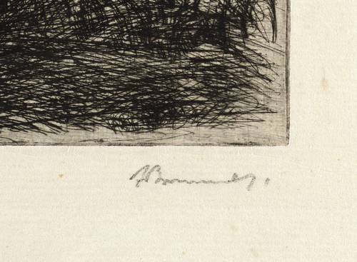1930-1935. Radierung / Strichätzung, in Schwarz, auf feinem hellgelbem Bütten. – Originale Künstlergrafik, von Adolf Brunner. – 14,8 x 20,6 cm (Darstellung / Platte), 23 x 34 cm (Blatt).