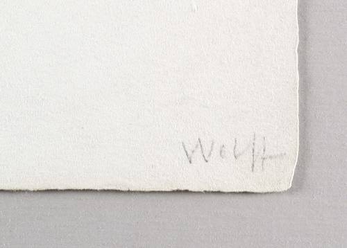Holthusen 35. Söhn HDO 72713. – Aus: Die Schaffenden (Berlin: Euphorion-Verlag 1922/1923), Bd. 4. – In der Blattecke rechts unten in Bleistift signiert: ″Wolff″. Links unten Trockenstempel: ″EUPHORION VERLAG″. – Ein Exemplar von 125 handsignierten Abzügen für den IV. Jahrgang der Mappe ″Die Schaffenden″ (Berlin: Euphorion-Verlag 1922/23). – Unbeschnittenes originalrandiges Exemplar. Unscheinbar fleckig. Guter Zustand.