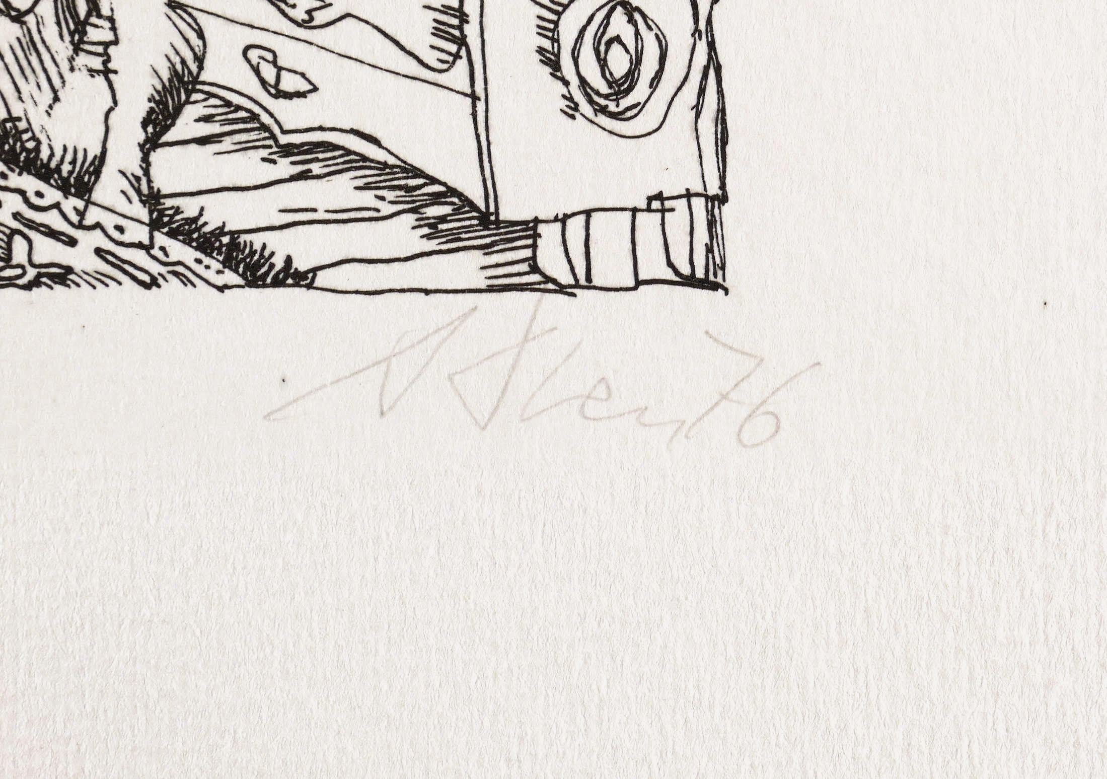 Aus: Falko Behrendt u.a., Imagination Format (Dresden: eikon Grafik-Presse 1976). – Rechts unten in Bleistift signiert und datiert: ″A. Dress 76″. Links Auflagenbezeichnung und Titel. – Originalrandiges Exemplar. Keine Lagerspuren. Tadellos. Sehr guter Zustand.