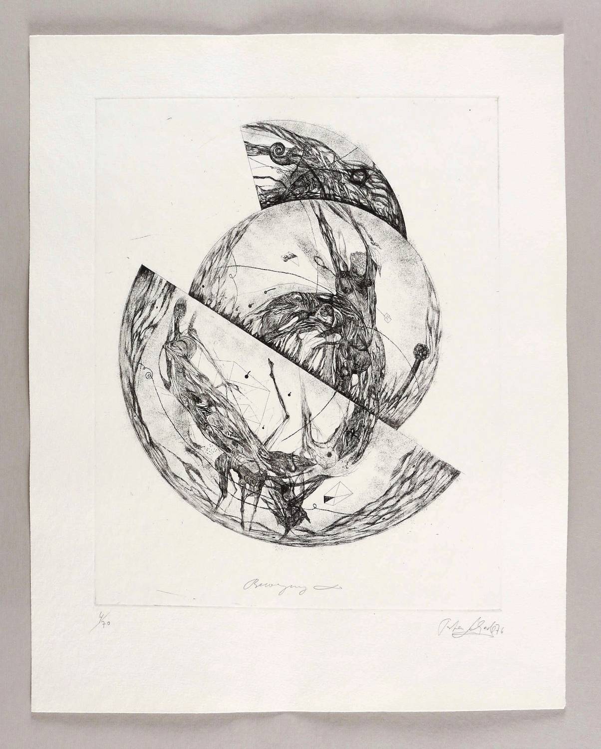 1976. Radierung / Strichätzung, Vernis mou & Roulette, in Schwarz, auf hellchamois Velin. – Originale Künstlergrafik, von Gregor Torsten Kozik. – Auflage Exemplar Nr. 4/70. – 37,1 x 29,3 cm (Darstellung / Platte), 49 x 39 cm (Blatt).