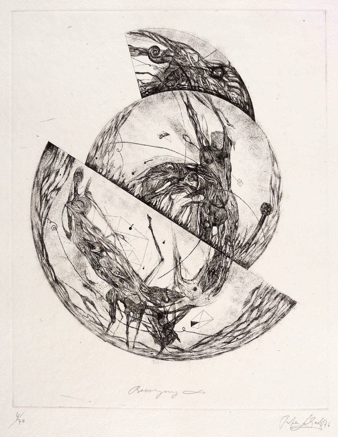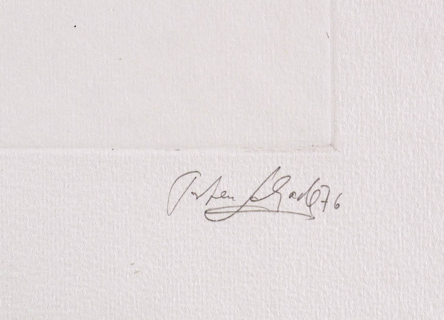 Aus: Falko Behrendt u.a., Imagination Format (Dresden: eikon Grafik-Presse 1976). – In Bleistift rechts unten signiert und datiert: ″Torsten Schade 76″. Links Titel und Auflagenbezeichnung. – Blatt Nr. 8 aus der Mappe ″Imagination Format″ der eikon Grafik-Presse in Dresden. – Sehr guter Zustand.