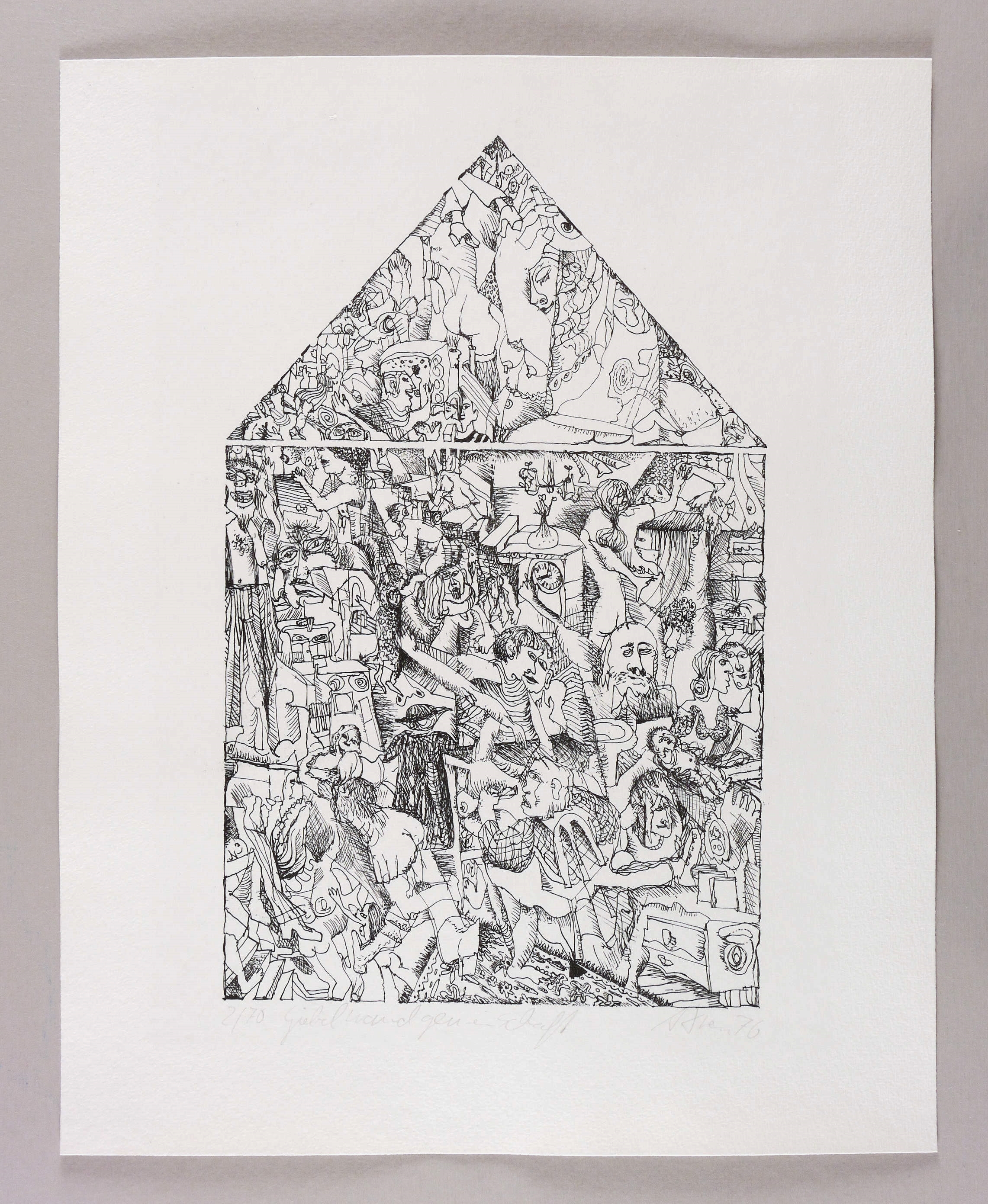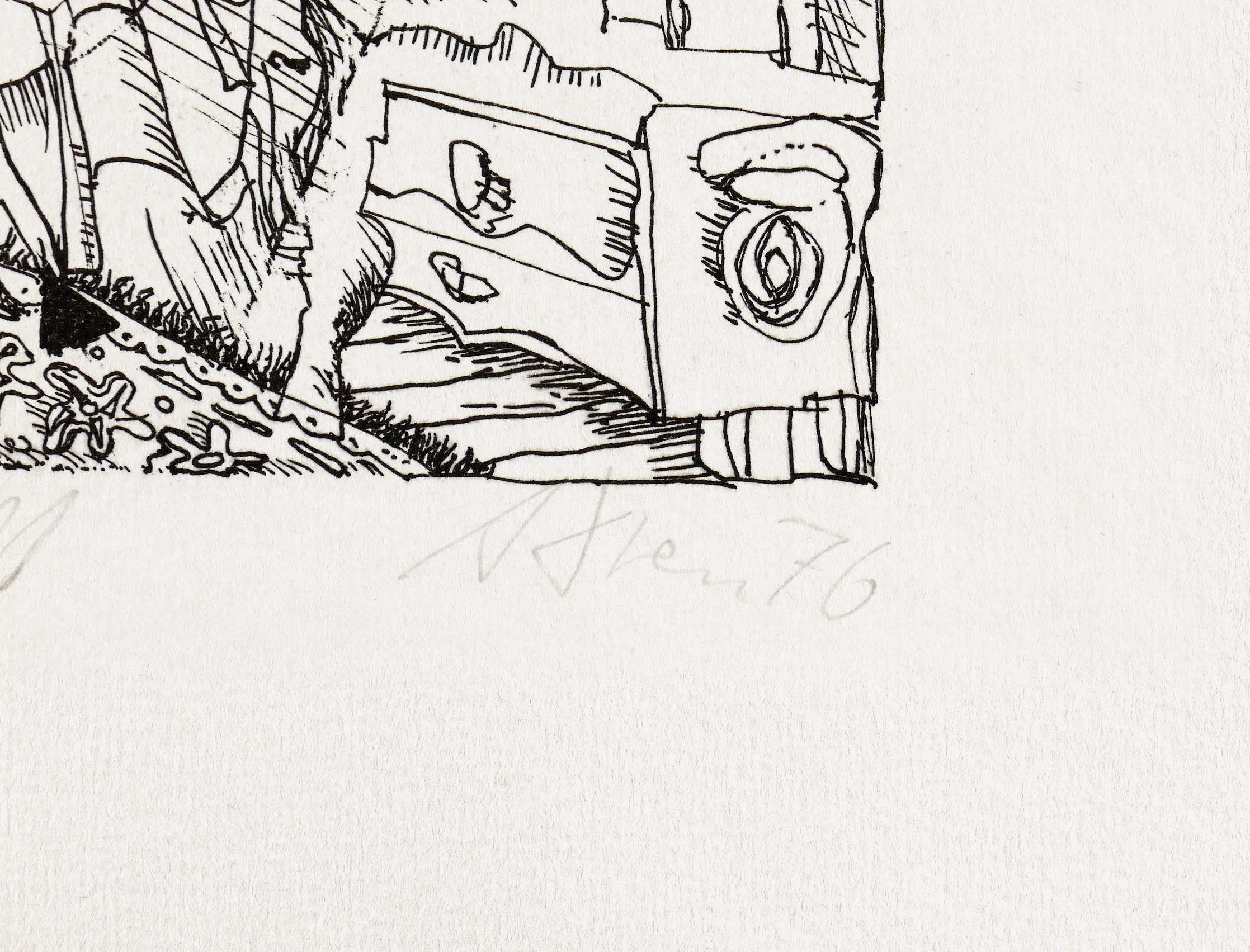 Aus: Falko Behrendt u.a., Imagination Format (Dresden: eikon Grafik-Presse 1976). – Rechts unten in Bleistift signiert und datiert: ″A. Dress 76″. Links Auflagenbezeichnung und Titel. – Originalrandiges Exemplar. Keine Lagerspuren. Tadellos. Sehr guter Zustand.