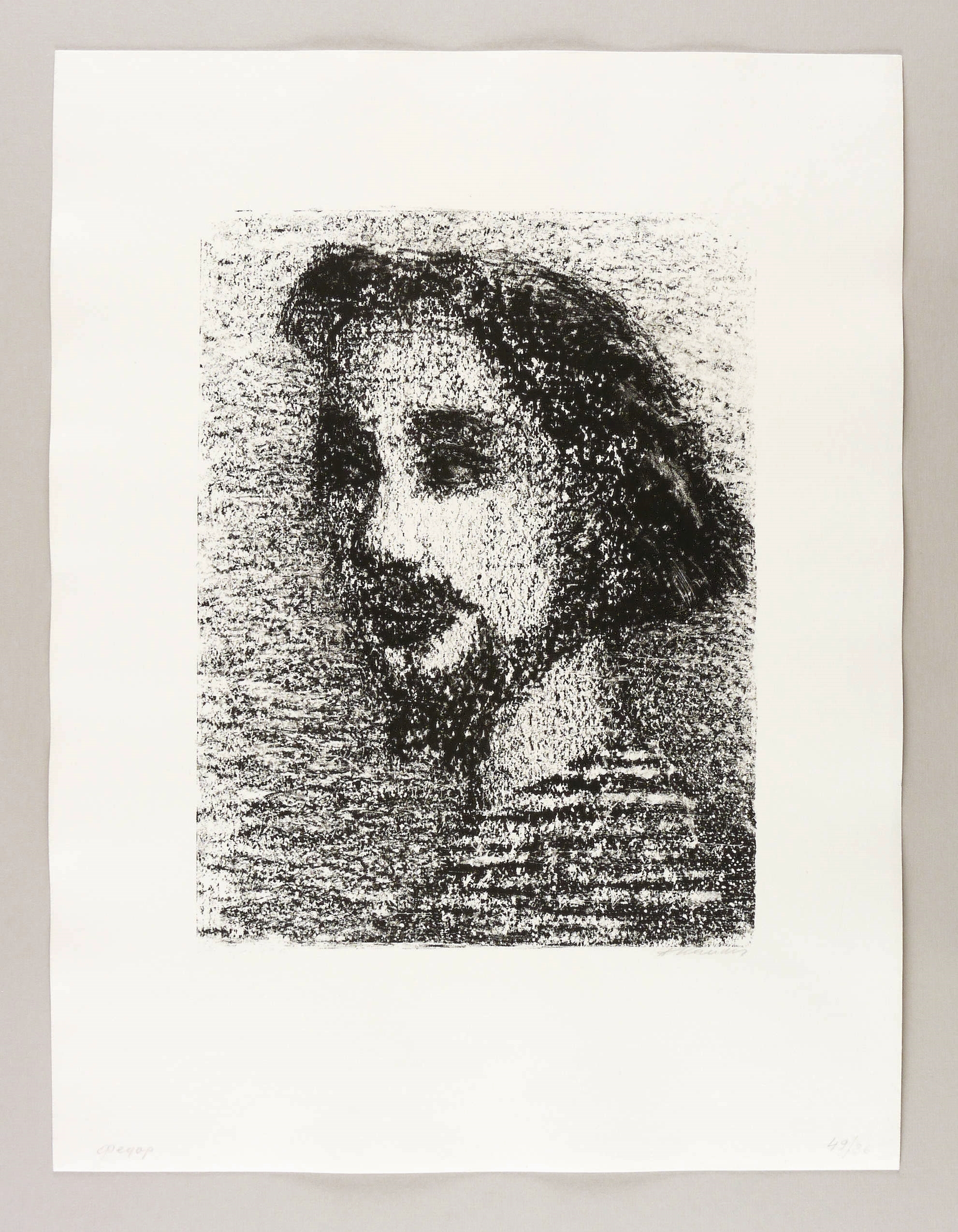 Mayer-Strodt V 53. – Rechts unten in Bleistift kyrillisch signiert. Im unteren Blattrand Titel und Nr. – Autorisierter Abzug außerhalb der Auflage von 125 Exemplaren zum lithografischen Mappenwerk ″Tewje, der Milchmann″ zu Scholem Alejchem (Moskau: Sovetskij Chudoznik 1961/1966). Druck wohl in Leningrad. - Die etwas spätere Edition als illustriertes Buch (Dresden: Verlag der Kunst 1967) wurde als ″Schönstes Buch der DDR 1967″ ausgezeichnet. - Selten. – Unbeschnittenes breitrandiges Exemplar. Tadellos. Sehr gut erhalten.