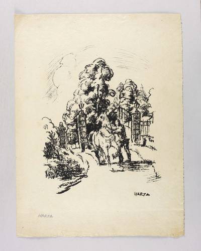 Aus: Die Graphischen Künste (Wien: Gesellschaft für Vervielfältigende Kunst 1920), Bd. 43. – Links unten in Kopierstift signiert: ″HARTA″. Im Stein rechts unten weitere Signatur: ″HARTA″. – Originalgrafische Beilage aus der signierten Vorzugsausgabe von ″Die graphischen Künste″ (XLIII, 1920). – Im Rand minimal gegilbt und etwas angeschmutzt. Unscheinbare Druckstellen. Insgesamt mäßig guter Zustand.