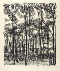 1917. Lithografie / Kreidelithografie, in Schwarz, partiell geschabt, auf weichem gelblichem Maschinenpapier. – Originale Künstlergrafik, von Fritz Giebelhausen. – 25,9 x 21,9 cm (Darstellung / Druckbild), 41 x 33 cm (Blatt).