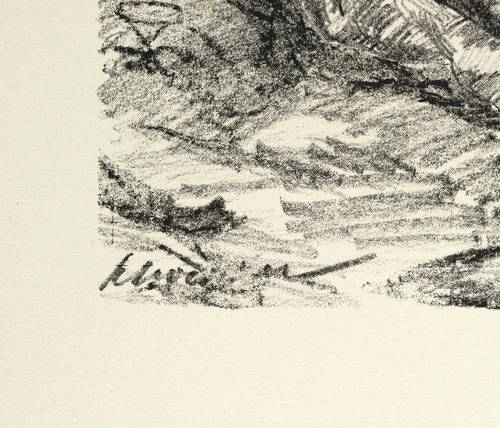 1915. Lithografie / Kreidelithografie, in Schwarz, auf weichem gelblichem Maschinenpapier. – Originale Künstlergrafik, von Wilhelm Schocken. – 27,3 x 22,4 cm (Darstellung / Druckbild), 42 x 33 cm (Blatt).