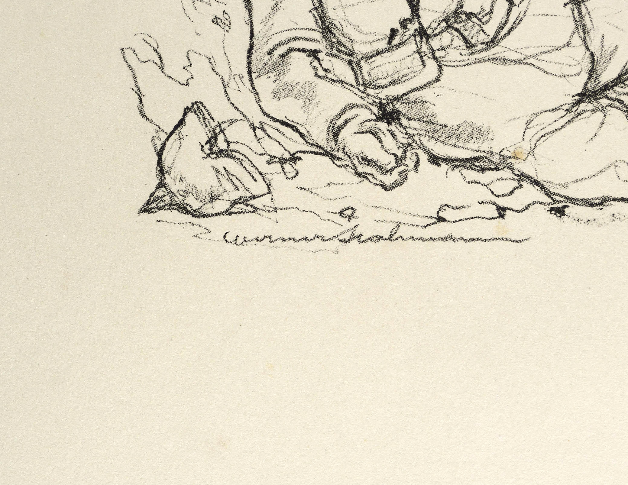 1915. Lithografie / Kreidelithografie, in Schwarz, auf weichem gelblichem Maschinenpapier. – Originale Künstlergrafik, von Werner Hahmann. – 22,6 x 18,5 cm (Darstellung / Druckbild), 42 x 33 cm (Blatt).