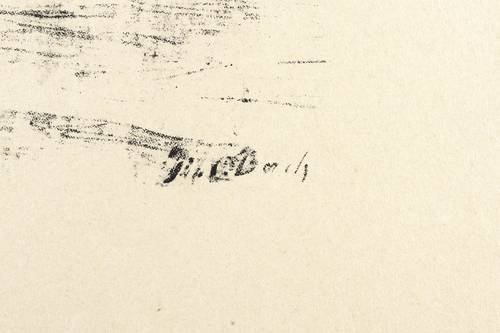 1915/1916. Lithografie / Kreidelithografie, in Schwarz, auf weichem gelbem Maschinenpapier. – Originale Künstlergrafik, von Paul Bach. – 21,4 x 26,8 cm (Darstellung / Druckbild), 34 x 42 cm (Blatt).