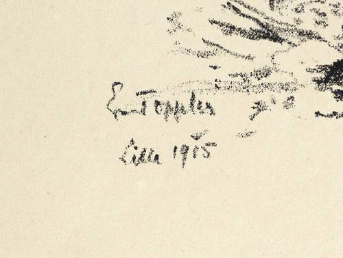 1915. Lithografie / Kreidelithografie, in Schwarz, auf weichem gelblichem Maschinenpapier. – Originale Künstlergrafik, von Ernst Oppler. – 21,4 x 25,5 cm (Darstellung / Druckbild), 34 x 42 cm (Blatt).