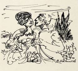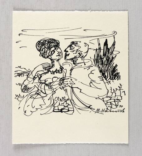 1970. Zeichnung / Federzeichnung, in schwarzer Tusche, auf hellchamois Velinkarton. – Originale Künstlergrafik, von Martin Hänisch. – Unikat. – 12,0 x 10,5 cm (Blatt), 7,8 x 10,0 cm (Darstellung).