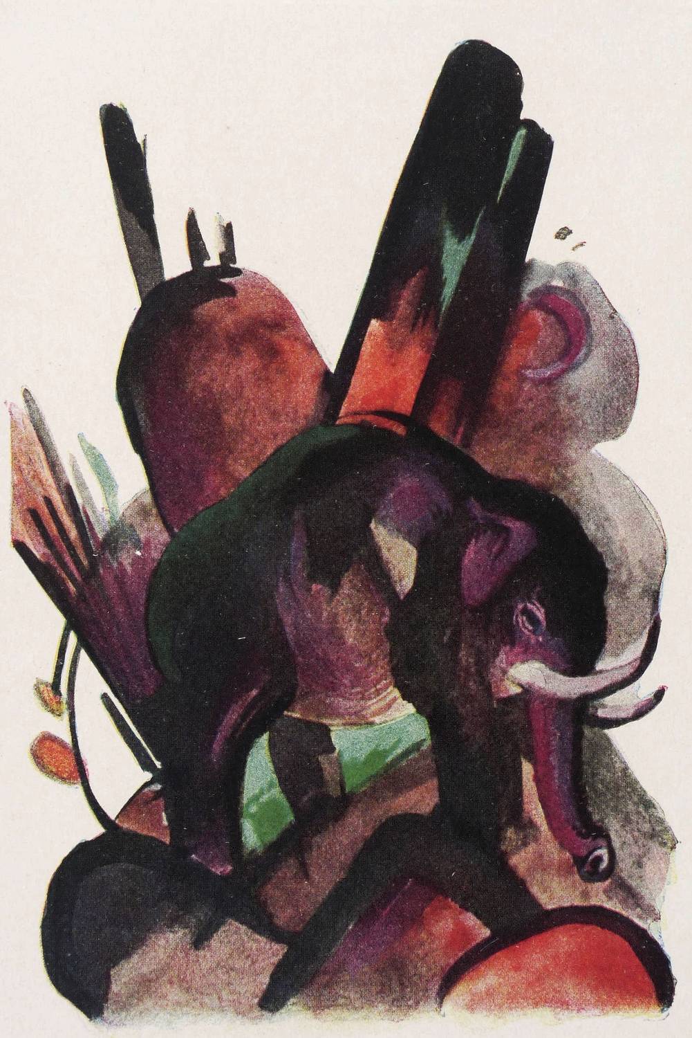 1921. Farboffsetdruck, in 4 Farben, auf glattem Maschinenpapier. – Von Franz Marc. – 18 x 11 cm (Trägerkarton), 14,2 x 9,1 cm (Darstellung / Blatt).