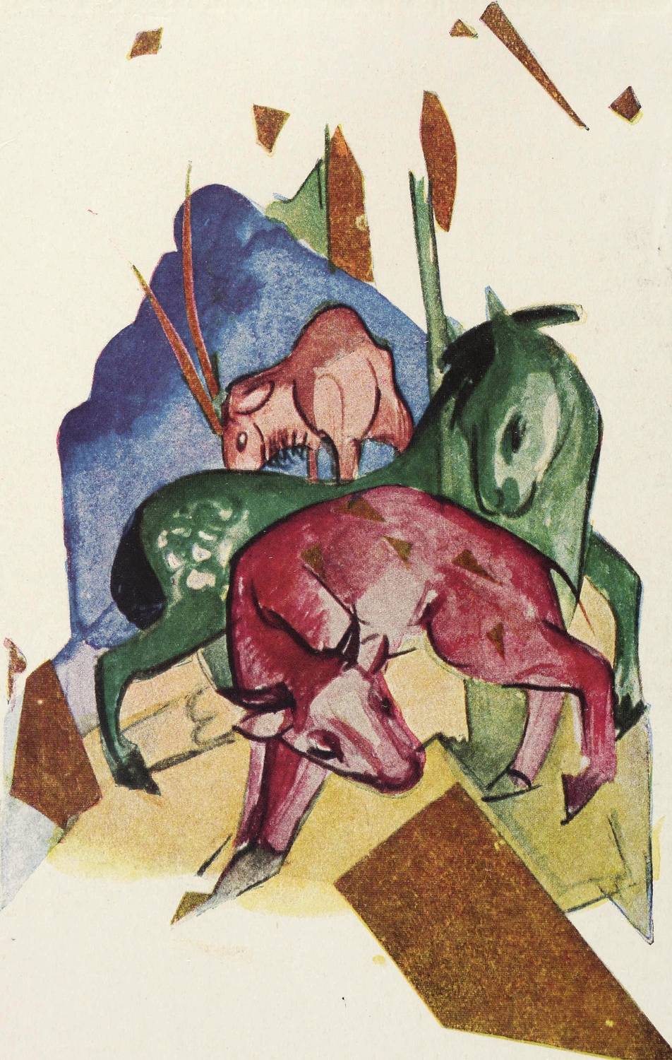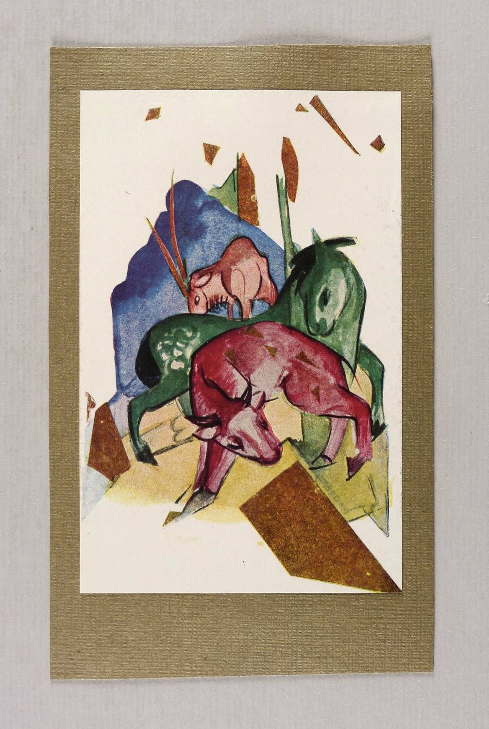 Marc, Franz. – „Drei Tiere (Postkarte)”.