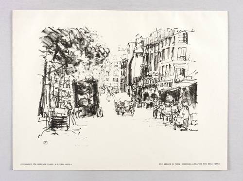 Aus: Zeitschrift für bildende Kunst (Leipzig: E.A. Seemann 1913), Bd. 24. – Nicht handsigniert. Im Blattrand unten typografisch bezeichnet: ″RUE BERGER IN PARIS. ORIGINAL-ALGRAPHIE VON ERNA FRANK″. Links Bandangabe. – Sehr guter Zustand.