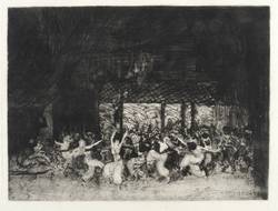 1913. Radierung / Vernis mou & Kaltnadel, in Schwarz, auf hellgelbem Van-Gelder-Zonen. – Originale Künstlergrafik, von Ernst Oppler. – 17,7 x 23,8 cm (Darstellung / Druckbild), 24 x 33 cm (Blatt), 18,5 x 24,8 cm (Platte).
