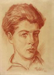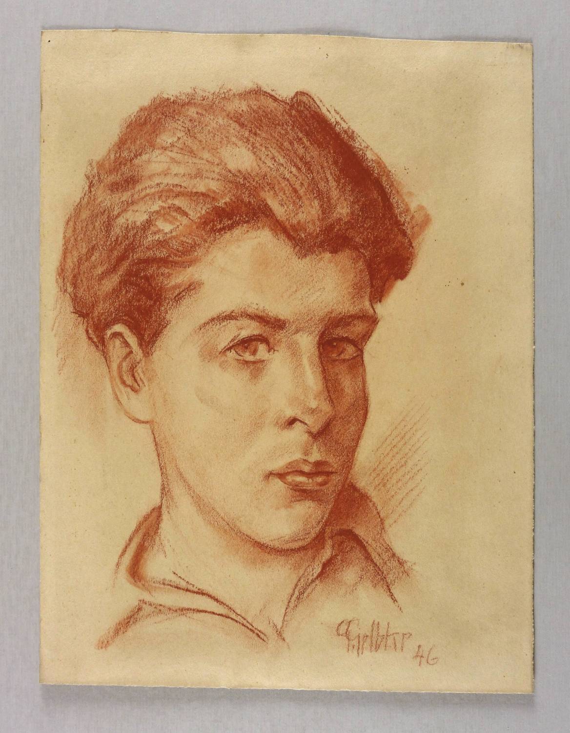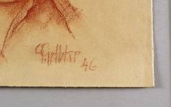 1946. Zeichnung / Rötelkreide, auf gelbem Karton. – Originale Künstlergrafik, von Georg Gelbke. – Unikat. – 36,0 x 26,8 cm (Darstellung / Blatt).