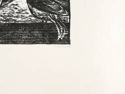 1977. Holzriss / Holzriß, in Schwarz, auf glattem gelblichem Velinkarton. – Originale Künstlergrafik, von Ellen Willnow. – 14,2 x 12,4 cm (Darstellung / Druckstock), 39 x 27 cm (Blatt).