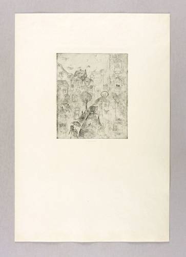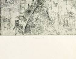 1977. Radierung / Strichätzung & Aquatinta, mit Plattenton, in Schwarz, auf gelblichem Velinkarton. – Originale Künstlergrafik, von Peter Laube. – 14,5 x 12,1 cm (Darstellung / Platte), 39 x 27 cm (Blatt).