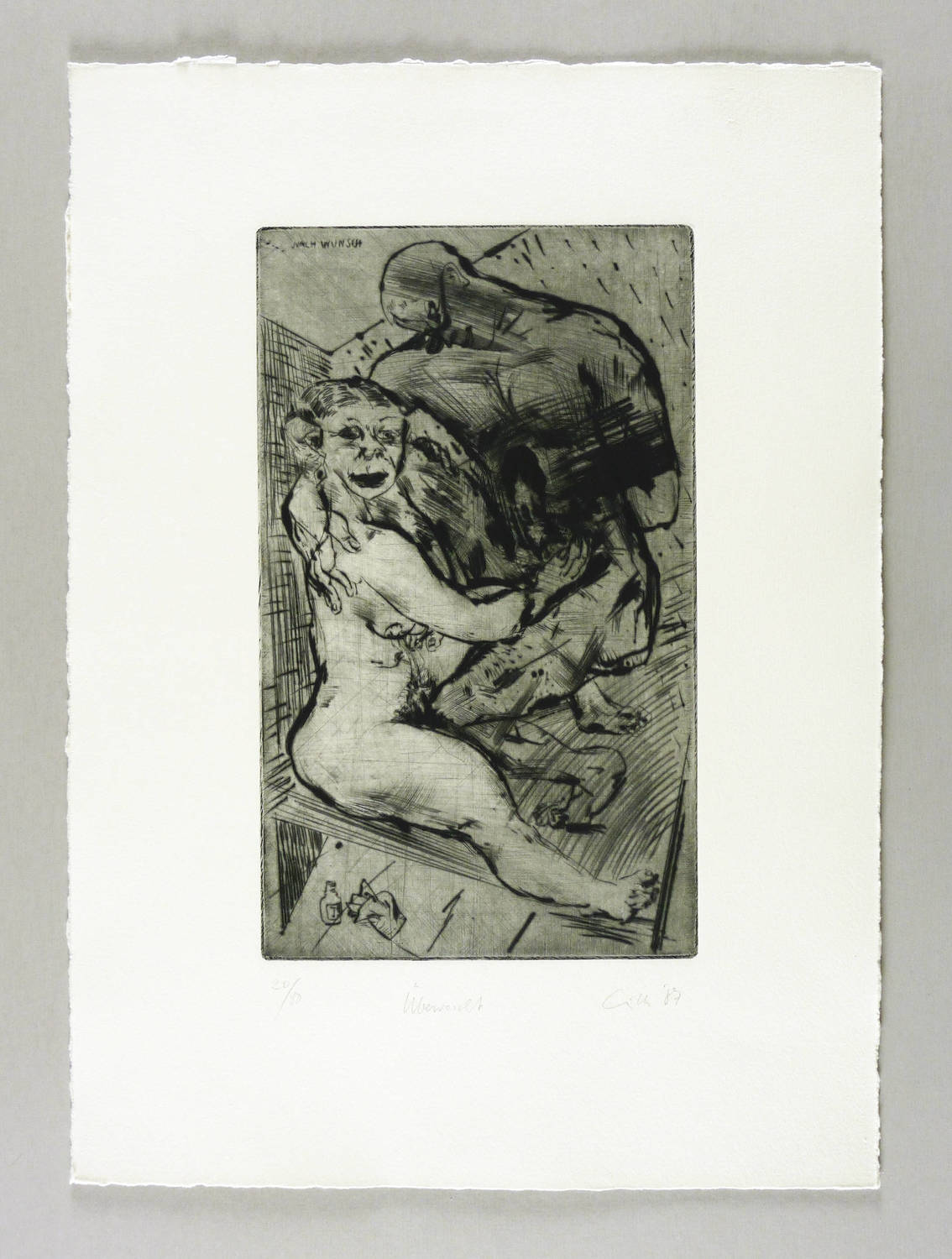 Rechts unten in Bleistift signiert und datiert: ″Gille 87″. Links Auflagenbezeichnung und Titel. In der Platte links oben bezeichnet: ″Nach Wunsch″. – Tadellos. Sehr guter Zustand.