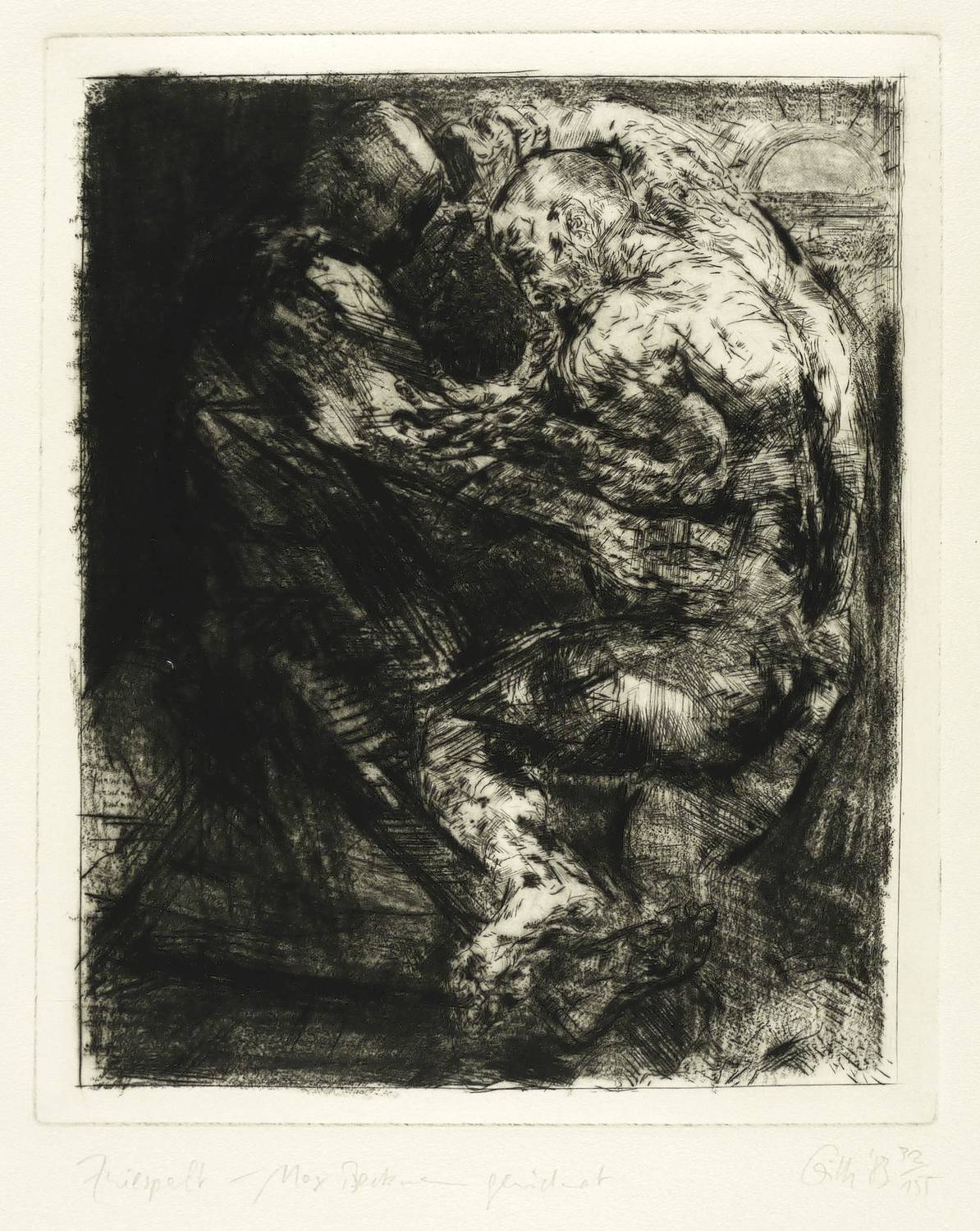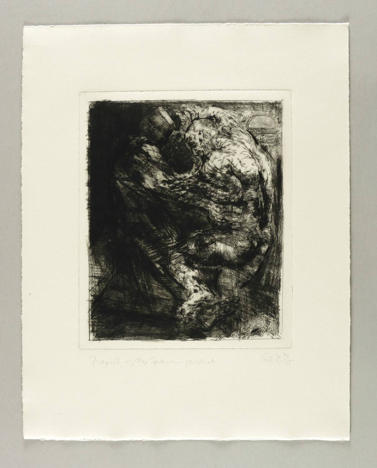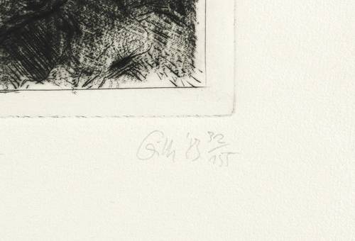 1983. Radierung / Kaltnadel & Roulette, in Schwarz, auf chamois Hahnemühle. – Originale Künstlergrafik, von Sighard Gille. – Auflage Exemplar Nr. 32/155. – 29,0 x 23,6 cm (Darstellung), 31,2 x 25,7 cm (Platte), 50 x 40 cm (Blatt).