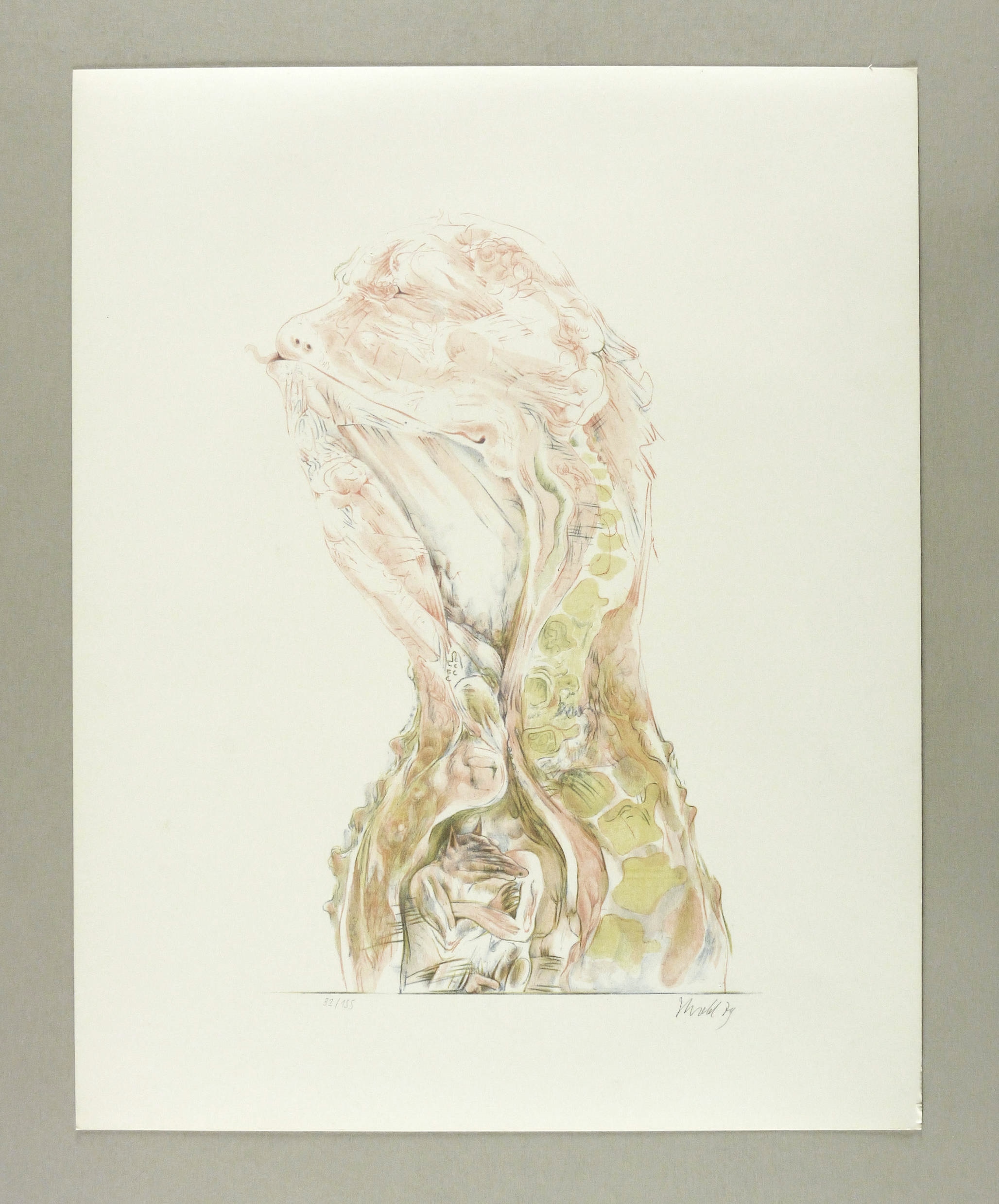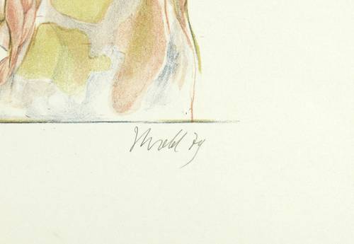 1979. Farblithografie / Kreidelithografie, in 4 Farben, auf weißem glattem Karton. – Originale Künstlergrafik, von Rainer Herold. – Auflage Exemplar Nr. 32/135. – 37,0 x 24,5 cm (Darstellung / Druckbild), 50 x 40 cm (Blatt).