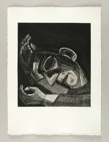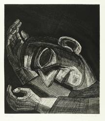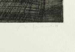 Wetterney 370 b. – Aus: Nuria Quevedo, Grafische Blätter zu Volker Braun. Der Eisenwagen (Halle/Leipzig: Mitteldeutscher Verlag 1988). – Rechts unten in Bleistift signiert und datiert. Links Auflagenbezeichnung. Wasserzeichen der Hahnemühle. – Druck von Manfred Wolf, Berlin. – Tadelloses Exemplar. Sehr guter Zustand.