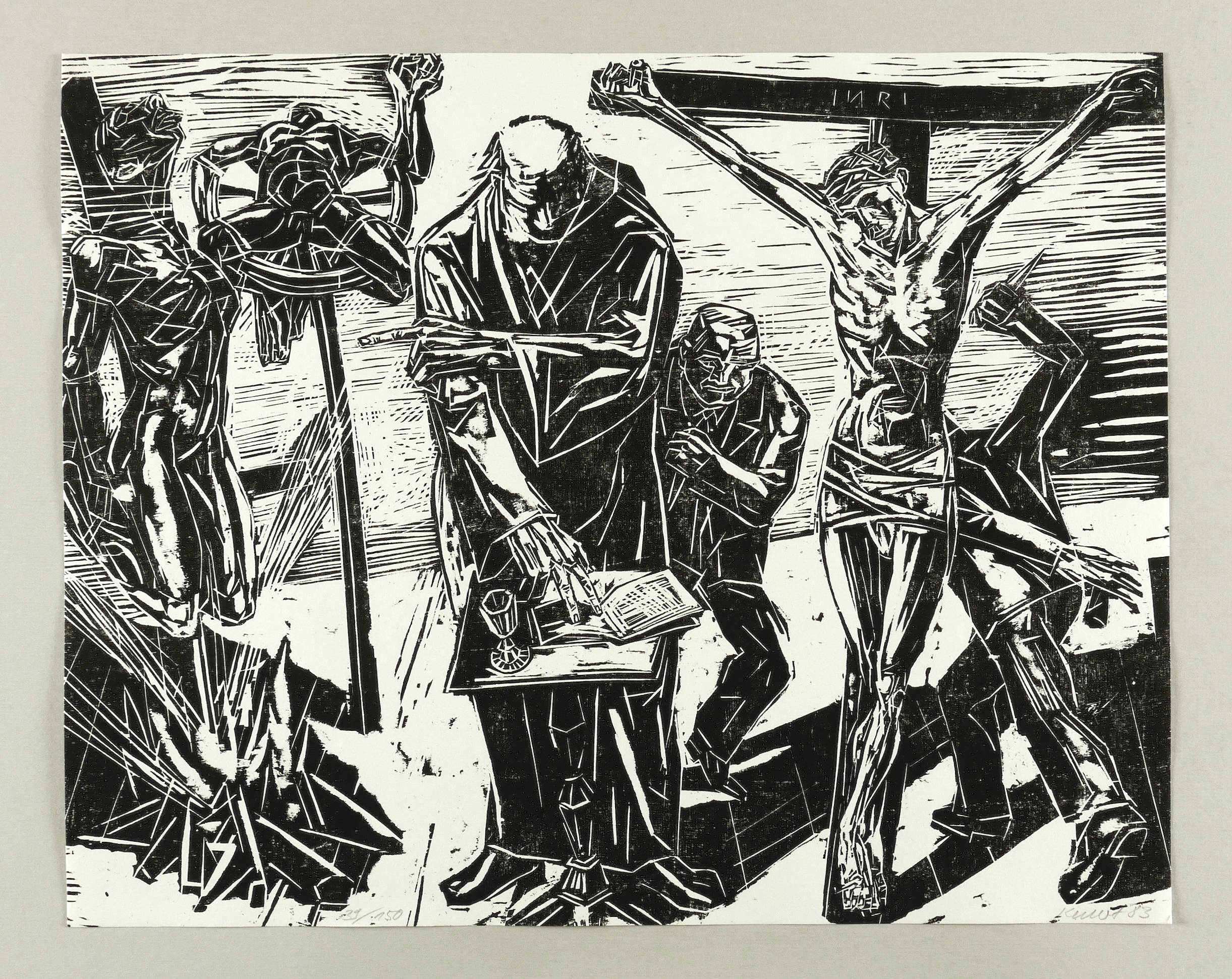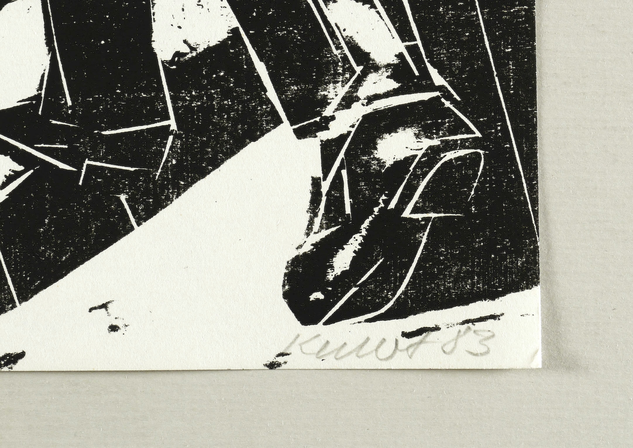 1983. Holzschnitt, in Schwarz, auf weißem Velin. – Originale Künstlergrafik, von Rolf Kuhrt. – Auflage Exemplar Nr. 39/150. – 40,0 x 50,4 cm (Darstellung / Blatt).