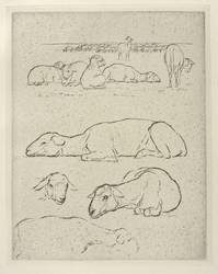 Aus: Zeitschrift für bildende Kunst (Leipzig: E.A. Seemann 1915), Bd. 26. – Nicht handsigniert. Im Blattrand rechts unten typografisch bezeichnet: ″SCHAFE. ORIGINALRADIERUNG VON AUGUST GAUL″. Links Verlagsadresse. – Sehr guter Zustand.