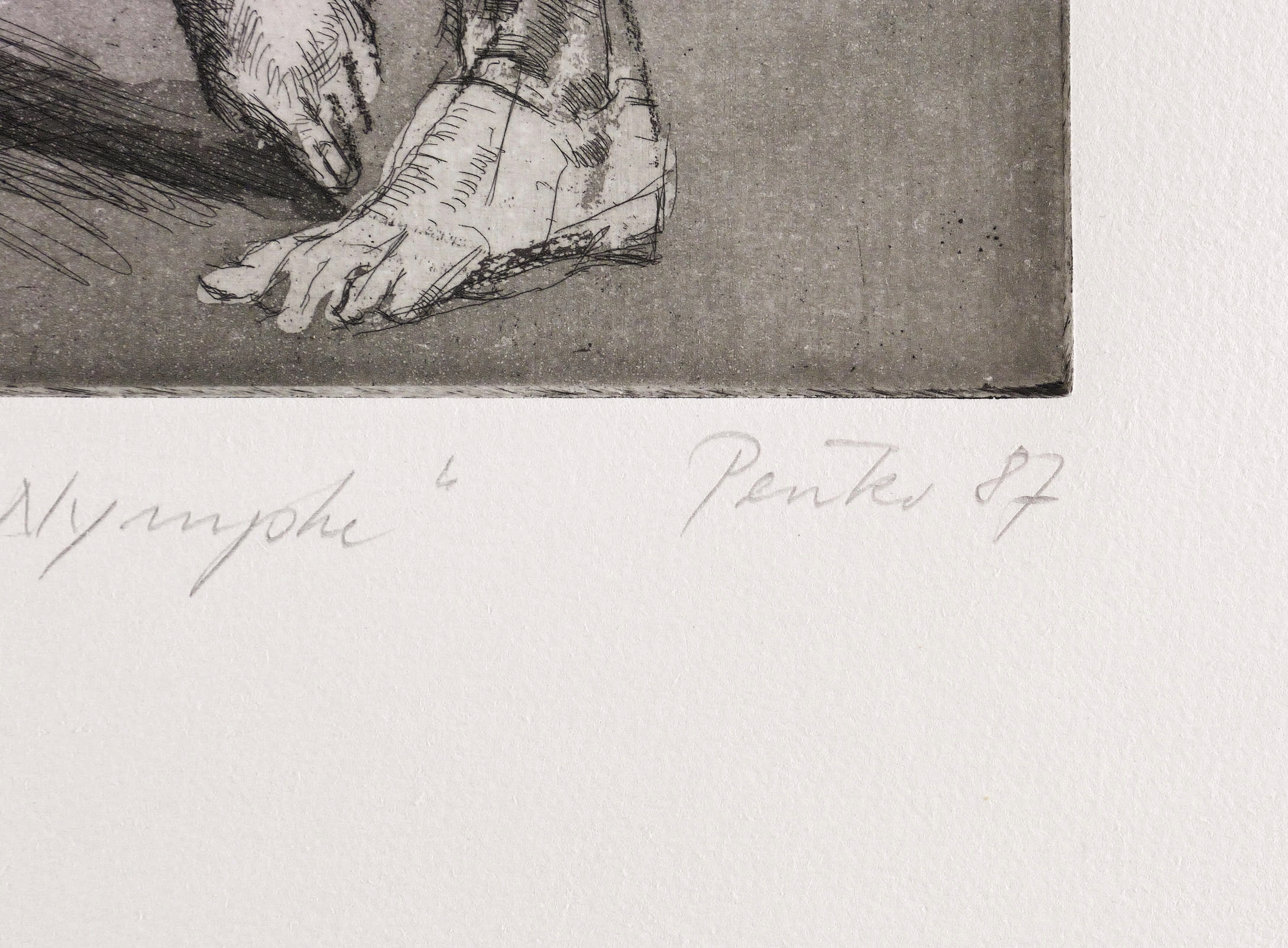1987. Radierung / Strichätzung & Aquatinta, in Schwarz, auf festem hellchamois Hahnemühle. – Originale Künstlergrafik, von Wolfgang Peuker. – Auflage Exemplar Nr. 20/50. – 29,7 x 22,0 cm (Darstellung / Platte), 49 x 35 cm (Blatt).