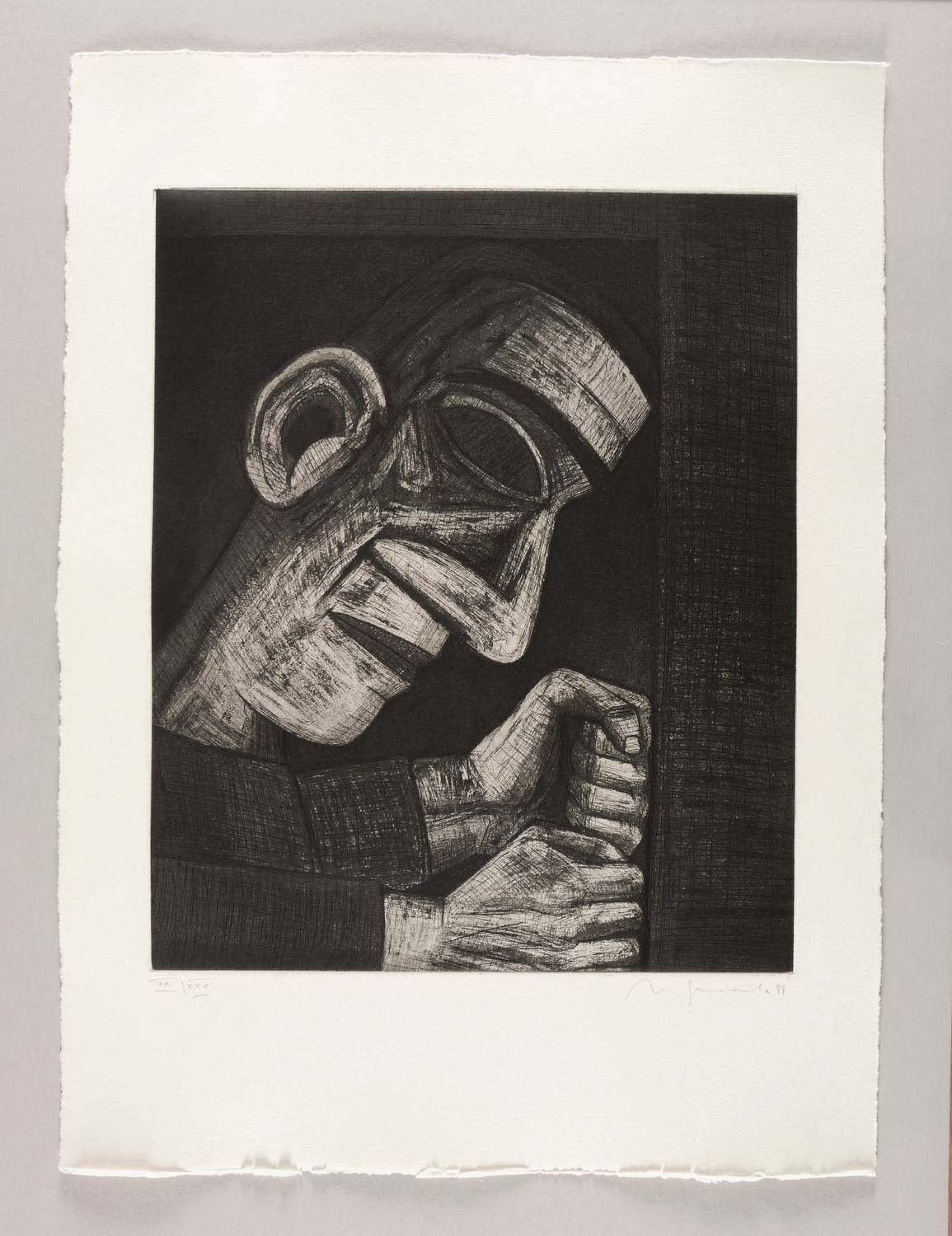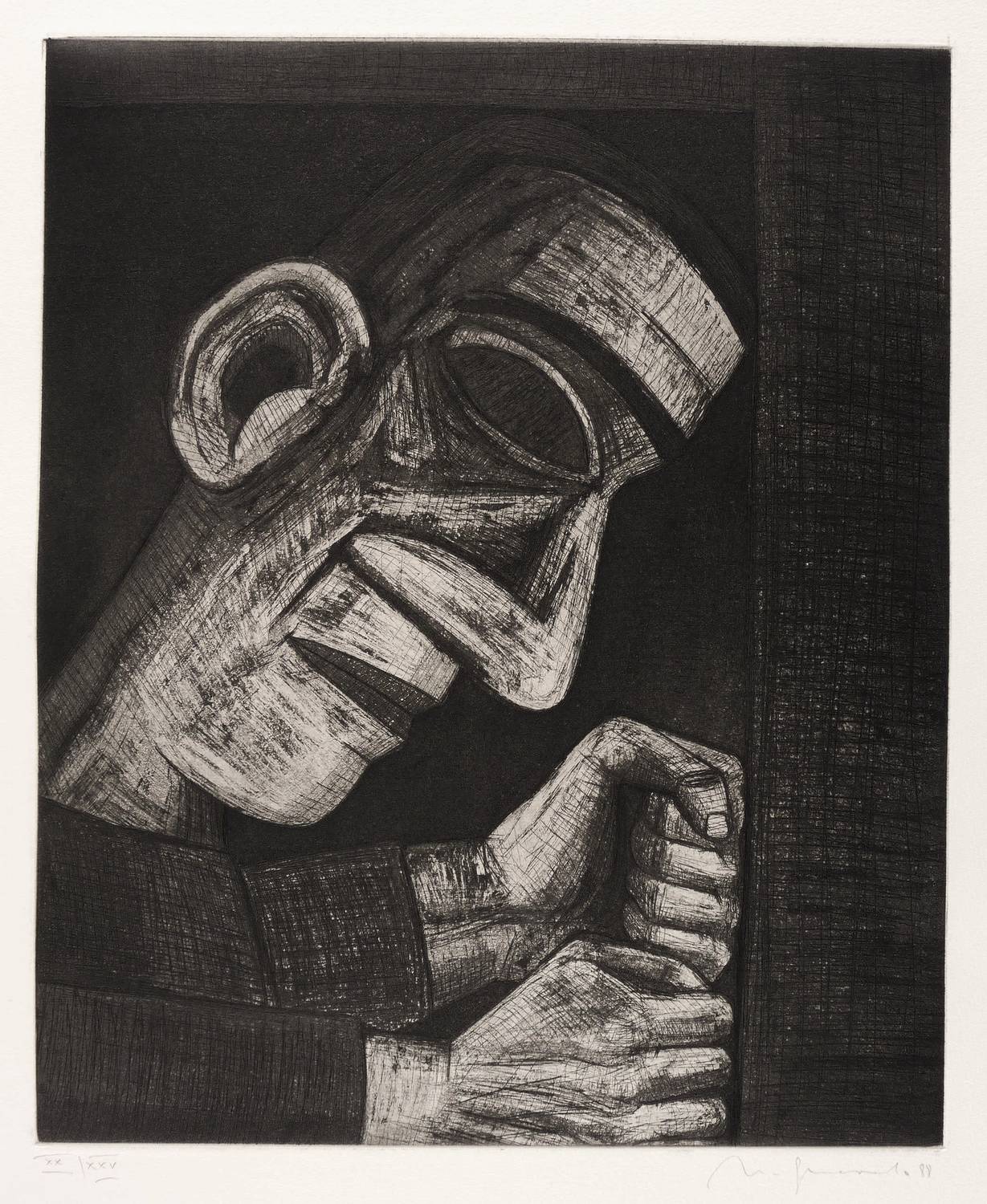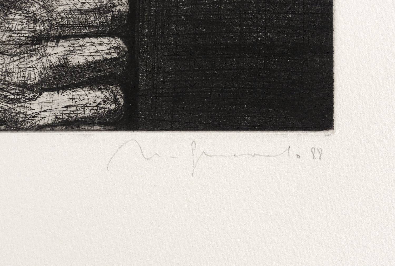 1988. Radierung / Aquatinta & Strichätzung, in Schwarz, auf schwerem hellchamois Hahnemühle. – Originale Künstlergrafik, von Nuria Quevedo. – Auflage Exemplar Nr. XX/XXV. – 37,5 x 30,8 cm (Darstellung / Platte), 54 x 40 cm (Blatt).