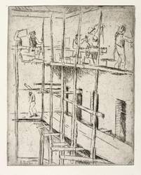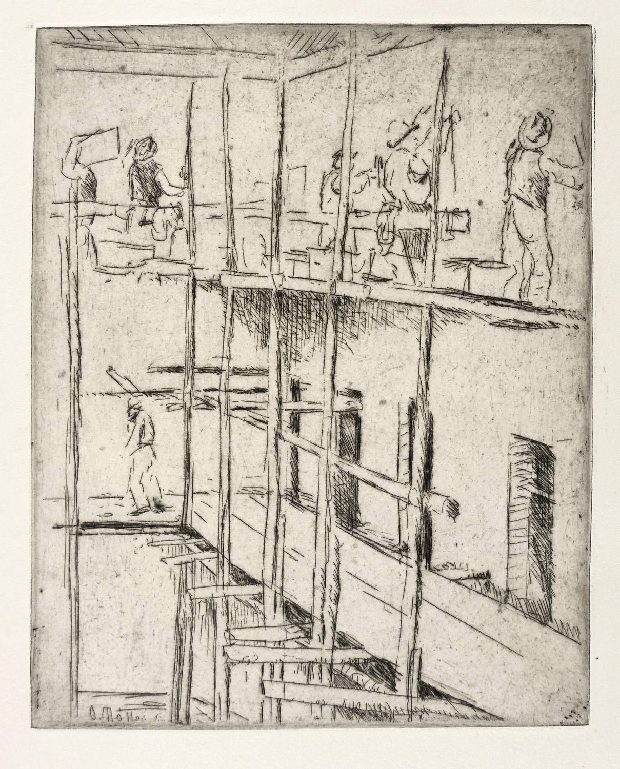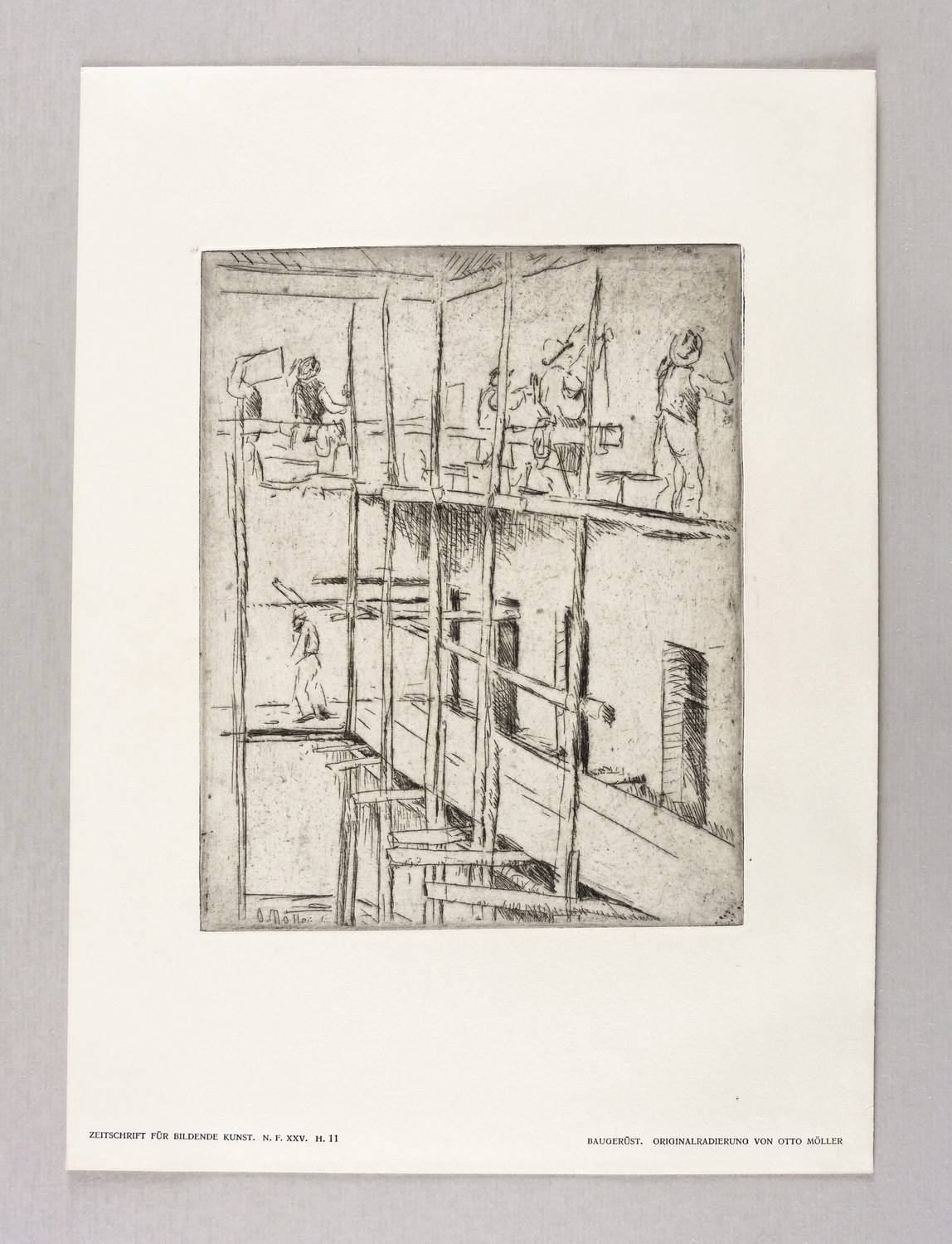 Aus: Zeitschrift für bildende Kunst (Leipzig: E.A. Seemann 1914), Bd. 25. – In der Platte links unten signiert und datiert: ″O. Möller 13″. Unterhalb der Darstellung typografisch bezeichnet: ″BAUGERÜST. ORIGINALRADIERUNG VON OTTO MÖLLER″. Verlagsadresse. – Sehr guter Zustand.