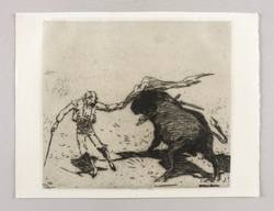 1912. Radierung / Strichätzung, in Schwarz, auf gelbem Kupferdruckkarton. – Originale Künstlergrafik, von Willi Geiger. – 22,4 x 25,1 cm (Darstellung / Platte), 24 x 32 cm (Blatt).