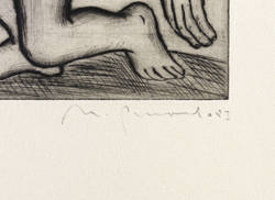 1983. Radierung / Kaltnadel, in Schwarz, mit Plattenton, auf chamois Hahnemühle. – Originale Künstlergrafik, von Nuria Quevedo. – Auflage Exemplar Nr. 35/100. – 20,0 x 15,3 cm (Darstellung / Platte), 40 x 27 cm (Blatt).