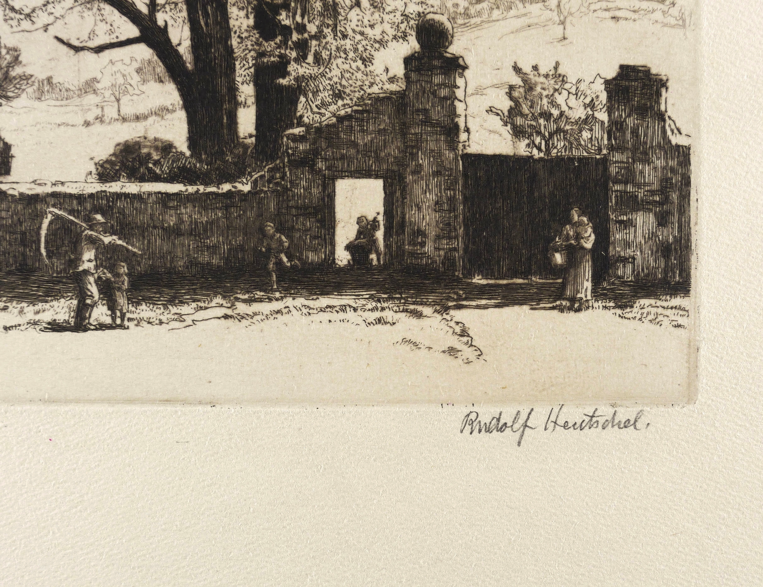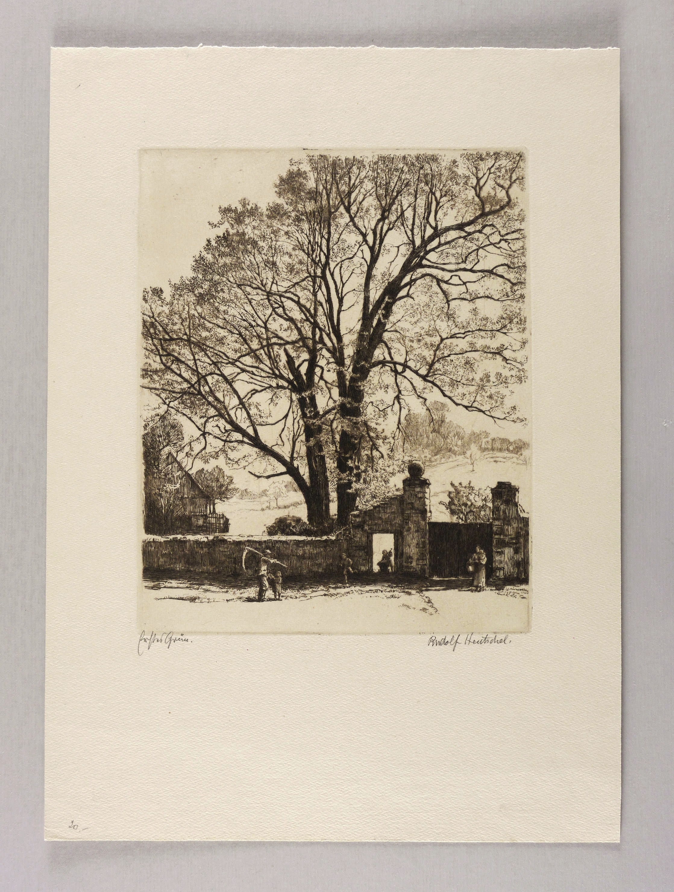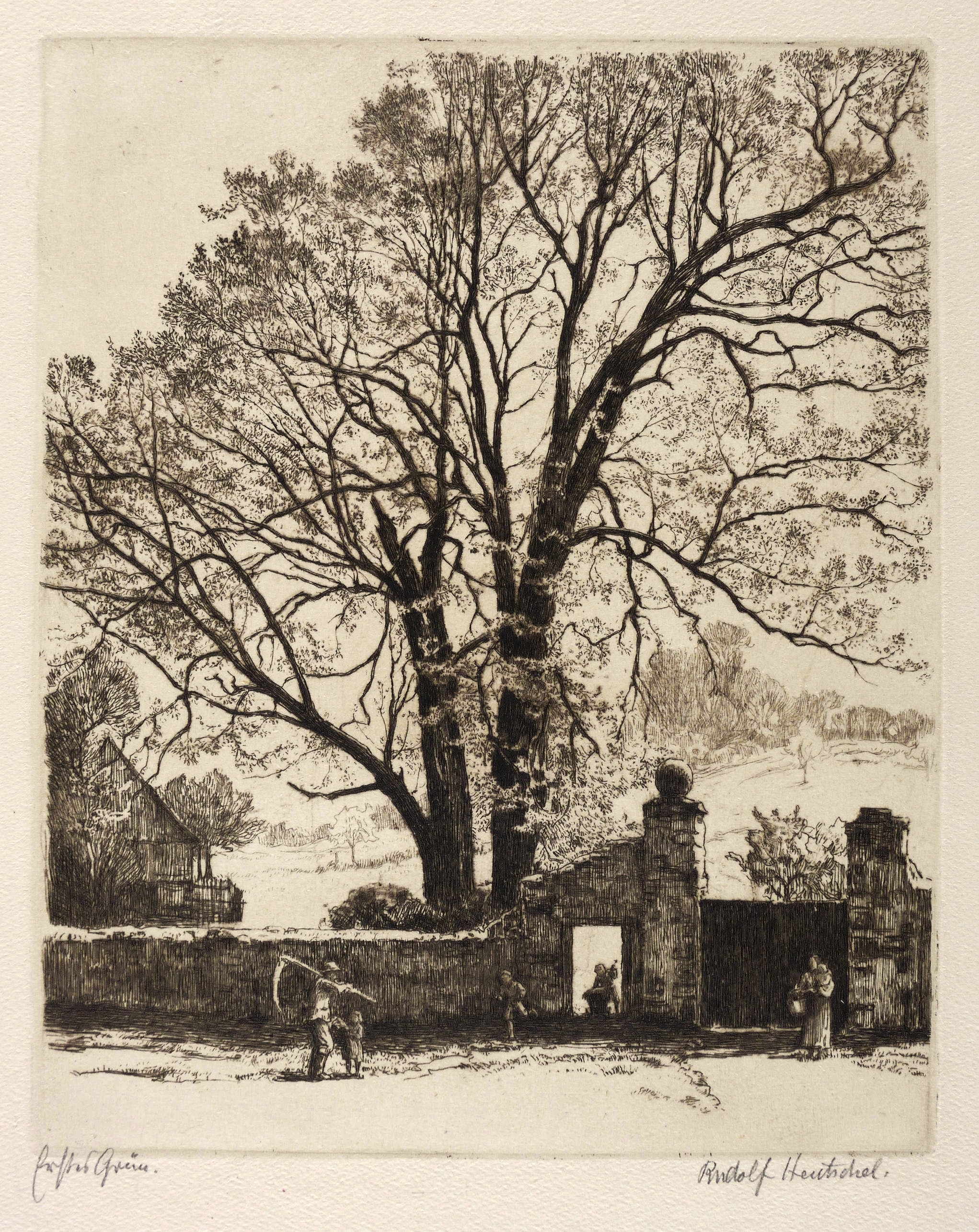 Um 1910. Radierung / Strichätzung & Kaltnadel, in Schwarzbraun, auf hellgelbem Kupferdruckkarton. – Originale Künstlergrafik, von Hans Rudolph Hentschel. – 24,8 x 20,1 cm (Darstellung / Platte), 41 x 29 cm (Blatt).