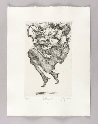 1986. Radierung / Strichätzung, in Schwarz, auf kräftigem hellchamois Hahnemühle. – Originale Künstlergrafik, von Gertrude Degenhardt. – Auflage Exemplar Nr. 86/200. – 27,1 x 17,2 cm (Darstellung / Platte), 40 x 30 cm (Blatt).