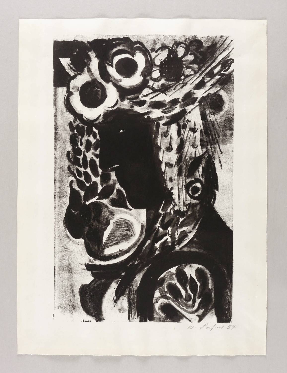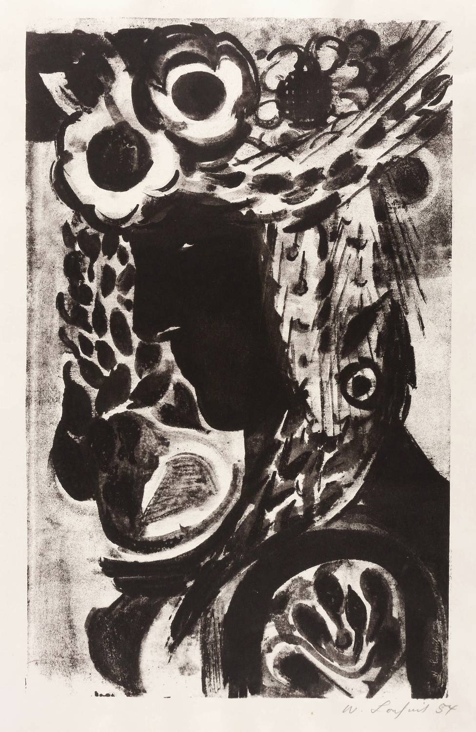 1954. Lithografie / Pinsellithografie, in Schwarz, auf festem hellchamois Velin. – Originale Künstlergrafik, von Wilhelm Lachnit. – 43,7 x 27,4 cm (Darstellung / Druckbild), 52 x 38 cm (Blatt).